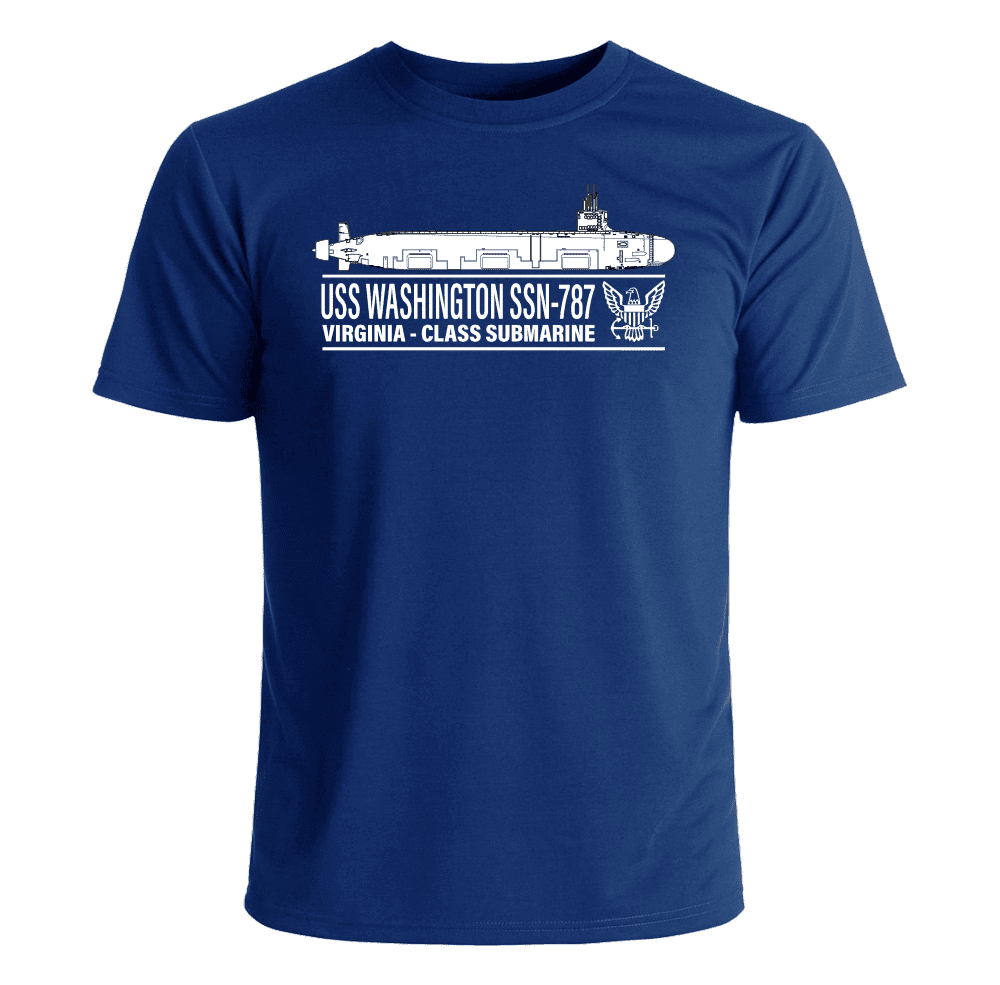 MilitaryBest is proud to offer this U.S. Navy Submarine T-Shirt. Each design is offered in Navy Blue. This fine USS Washington SSN-787 T-Shirt is proudly printed in the USA. The quality of all of our Military products is guaranteed. Unless there is a defect in workmanship or material, these shirts are unreturnable.A percentage of the sale of each MilitaryBest item is forwarded to the licensing departments of each respective branch of service in support of the MWR (Morale, Welfare, & Recreation) program. These payments are made by either ALL4U LLC or the wholesaler from where the item originated. Our team thanks you for your service and your support of these programs.