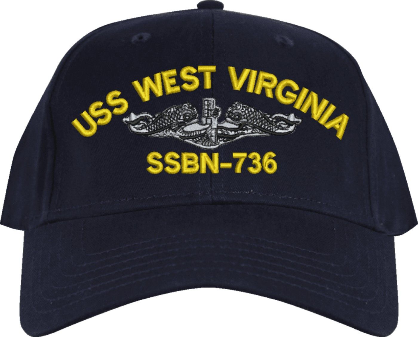 This USS West Virginia SSBN-736 w/ Silver Dolphins Navy Blue Low-Profile Cap (Made in the USA) is an overstock item and is only available for the value price while supplies last. Clearance Items are not eligible for Refunds or Returns,A percentage of the sale of each MilitaryBest item is forwarded to the licensing departments of each respective branch of service in support of the MWR (Morale, Welfare, & Recreation) program. These payments are made by either ALL4U LLC or the wholesaler from where the item originated. Our team thanks you for your service and your support of these programs.