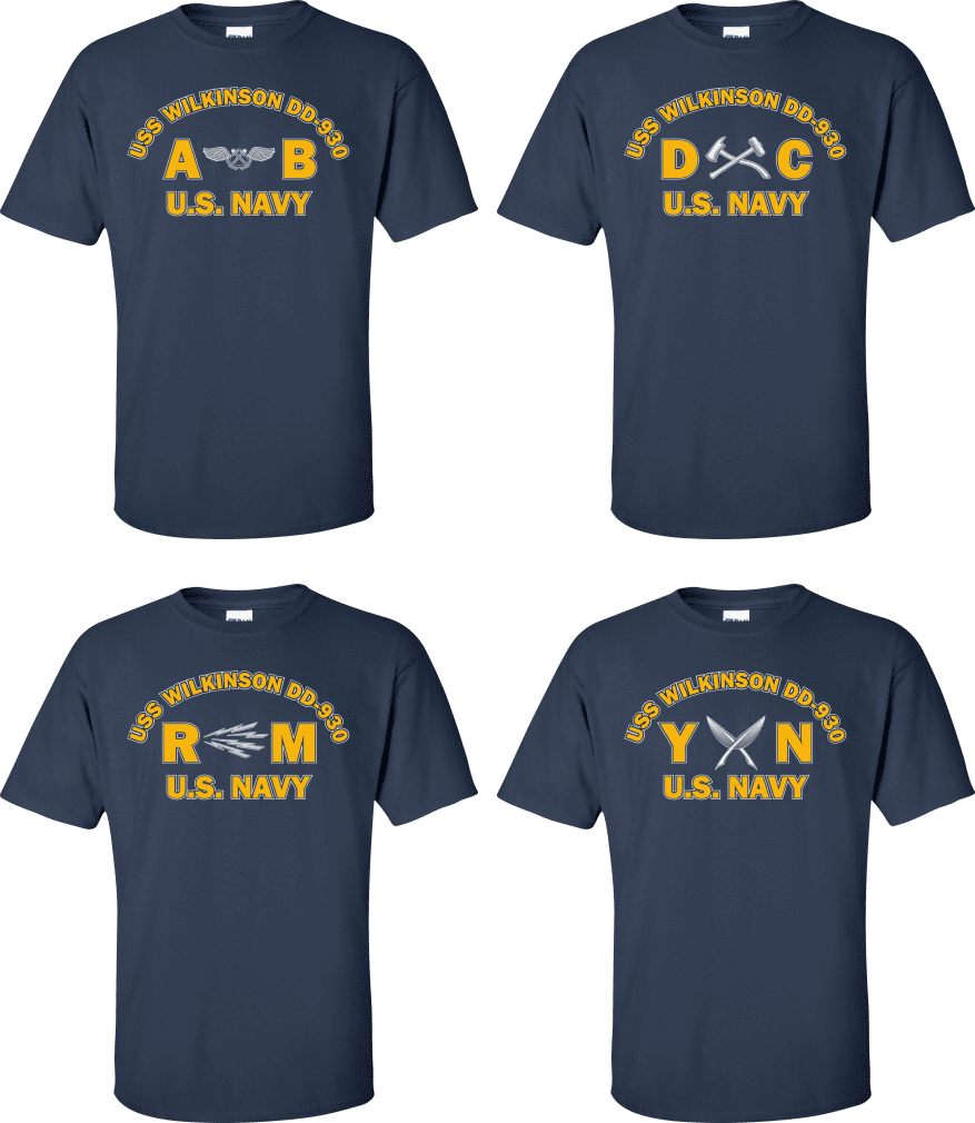 Due to disruptions in supply chains, this design will be embroidered on a Champion, Gildan, Jerzees or comparable brand.Proudly display your ship and rate with our top quality USS WILKINSON DD-930 Rates t-shirts, sweatshirts, and hoodies. These fine U.S. Navy apparel items will make you the envy of your veteran buddies, or will make a fine gift! Our USS WILKINSON DD-930 shirts are proudly printed in the USA!