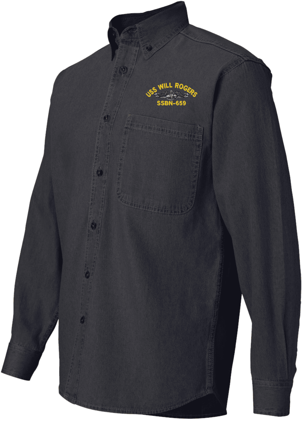 Militarybest is proud to offer this custom embroidered USS William H Bates SSN-680 with Dolphins Embroidered Denim Shirt. Each Shirt is embroidered with high quality Rapos thread utilizing our in house "Happy Brand" Embroidering Machines.