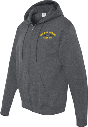 MilitaryBest has expanded its line of apparel with this custom embroidered USS William H Bates SSN-680 with Dolphins Embroidered Zippered Hoodie. Each Hoodie is direct embroidered onto a Champion brand 9.5 oz 50/50 Cotton Poly blend. This will make an excellent addition to your wardrobe, or a great gift. Your satisfaction is Guaranteed! These quality zippered hoodies are proudly embroidered at our facilities in Scottsboro, AL. Support the Army MWR program by purchasing only from Licensed Vendors.