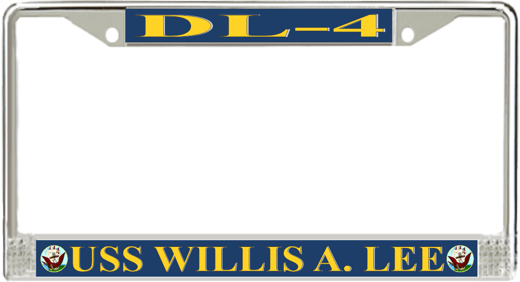 USS Willis A. Lee DL-4 License Plate FrameThis USS Willis A. Lee DL-4 License Plate Frame is proudly made in the USA at our facilities in Scottsboro, Alabama. Each of our MilitaryBest U.S. Navy Frames feature top and bottom Poly Coated Aluminum strips that are printed using sublimation which gives these quality automobile military frames a beautiful high gloss finish.