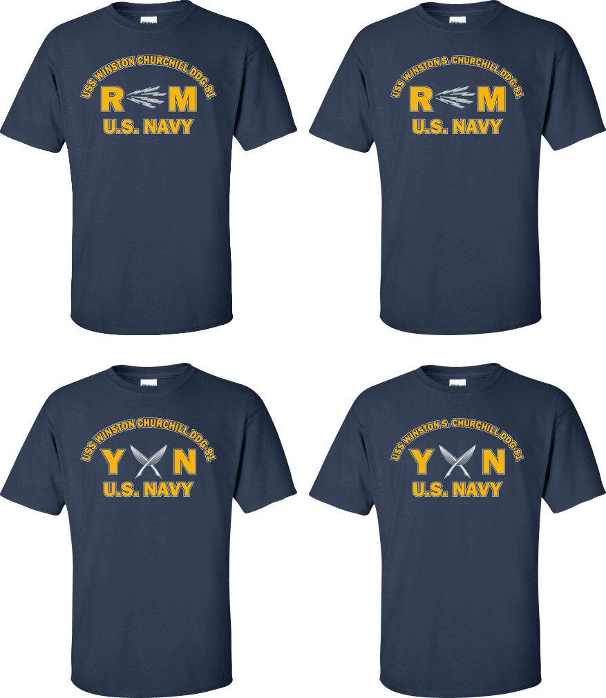 Due to disruptions in supply chains, this design will be embroidered on a Champion, Gildan, Jerzees or comparable brand.Proudly display your ship and rate with our top quality USS WINSTON CHURCHILL DDG-81 Rates t-shirts, sweatshirts, and hoodies. These fine U.S. Navy apparel items will make you the envy of your veteran buddies, or will make a fine gift! Our USS WINSTON CHURCHILL DDG-81 shirts are proudly printed in the USA!
