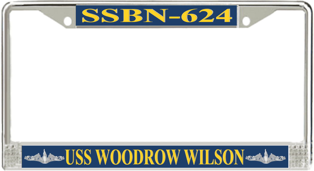 USS Woodrow Wilson SSBN-624 License Plate Frame This USS Woodrow Wilson SSBN-624 License Plate Frame is proudly made in the USA at our facilities in Scottsboro, Alabama. Each Frame features top and bottom sublimated design strips that are poly coated for a protective gloss finish. Please check your state and local regulations for compatibility of these frames for use on your vehicle.