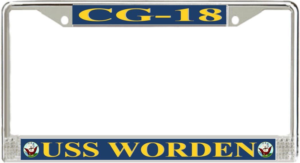 USS Worden CG-18 License Plate FrameThis USS Worden CG-18 License Plate Frame is proudly made in the USA at our facilities in Scottsboro, Alabama. Each of our MilitaryBest U.S. Navy Frames feature top and bottom Poly Coated Aluminum strips that are printed using sublimation which gives these quality automobile military frames a beautiful high gloss finish.