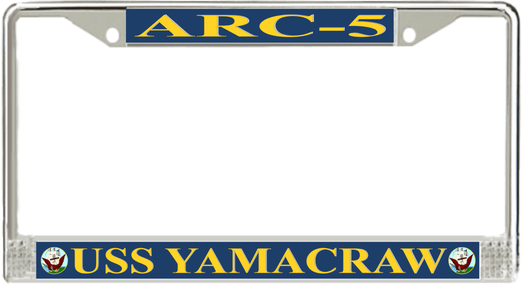 USS Yamacraw ARC-5 License Plate FrameThis USS Yamacraw ARC-5 License Plate Frame is proudly made in the USA at our facilities in Scottsboro, Alabama. Each of our MilitaryBest U.S. Navy Frames feature top and bottom Poly Coated Aluminum strips that are printed using sublimation which gives these quality automobile military frames a beautiful high gloss finish.