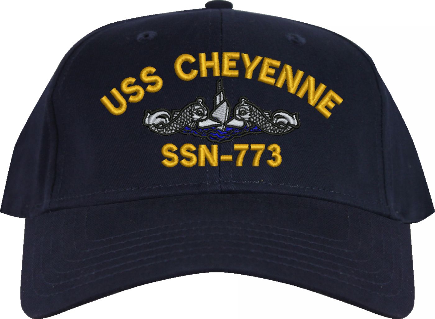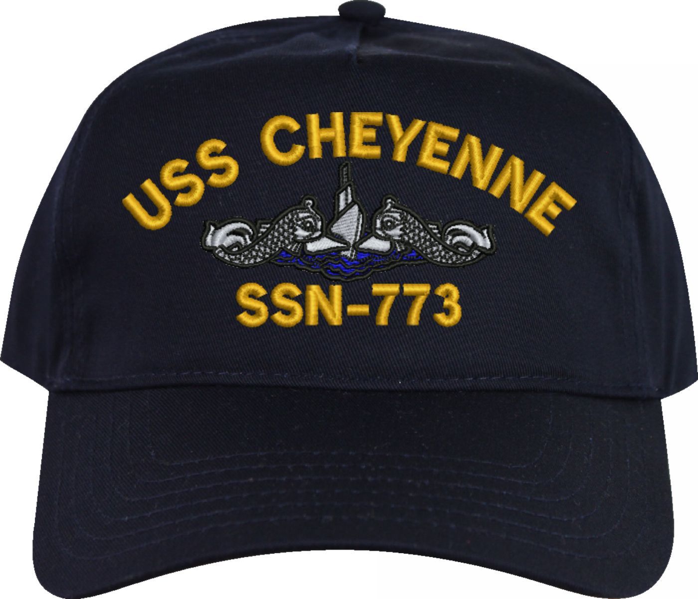 MilitaryBest is proud to offer this USS Cheyenne SSN-773 Blue Water Dolphins Submarine Embroidered Cap. The design of this Cap is crisp, clean, and sure to be loved by people of all ages! This Cap is crafted by our skilled embroidery technicians at our facilities in Scottsboro, AL. As with all MilitaryBest items, your satisfaction is guaranteed!