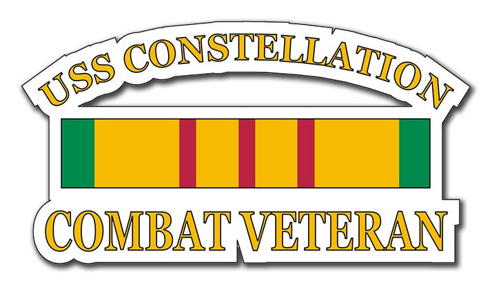 This Vinyl USS Constellation CV64 Vietnam Combat Veteran with Ribbon sticker is a Militarybest.com exclusive. Our combat veteran decal is make at our facilities in Scottsboro, Alabamau This sticker is designed for outside application. For bulk pricing for custom and wholesale decals click here: Custom & Wholesale Decals!*While many of our customers use our decals on a variety of surfaces. Their intended purpose is for windshield applications