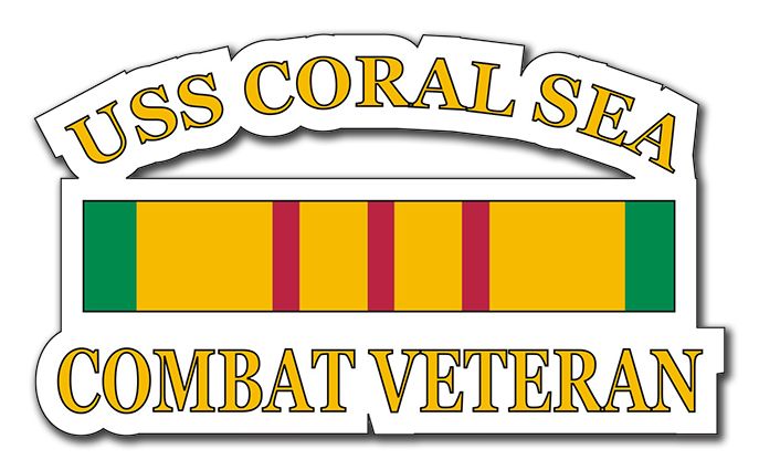 This Vinyl USS Coral Sea CV-43 Vietnam Combat Veteran with Ribbon sticker is a Militarybest.com exclusive. Our combat veteran decal is make at our facilities in Scottsboro, Alabamau This sticker is designed for outside application. For bulk pricing for custom and wholesale decals click here: Custom & Wholesale Decals!*While many of our customers use our decals on a variety of surfaces. Their intended purpose is for windshield applications