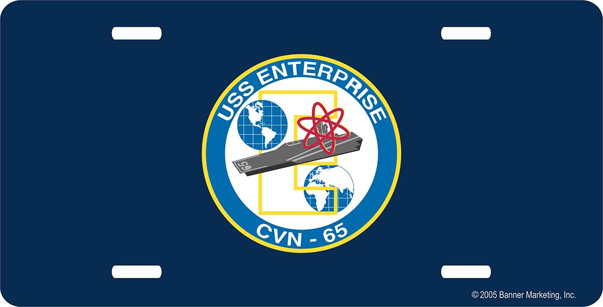 This USS Enterprise CVN-65 License Plate is made from heavy gauge aluminum and has a baked enamel finish to last for many years of use. Each plate measures 5 15/16" x 11 15/16". This license plate would make a wonderful addition to your collection or a great gift.