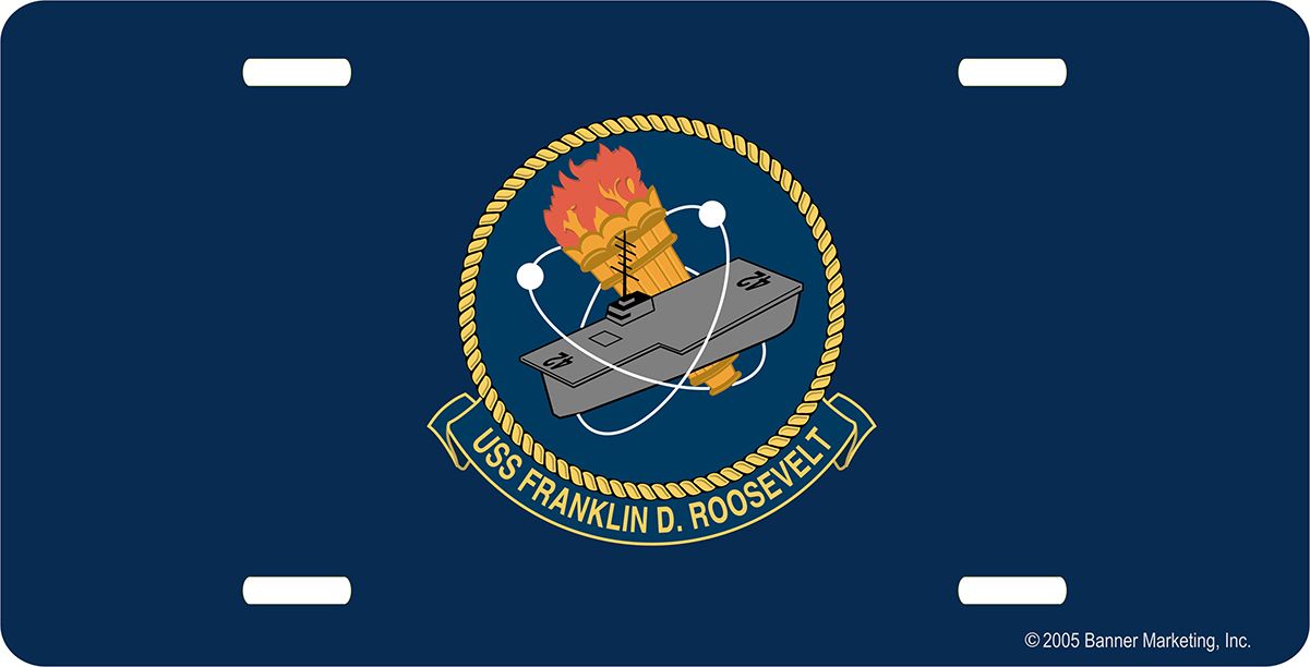 This USS Franklin D. Roosevelt CV-42 License Plate is made from heavy gauge aluminum and has a baked enamel finish to last for many years of use. Each plate measures 5 15/16" x 11 15/16". This license plate would make a wonderful addition to your collection or a great gift.