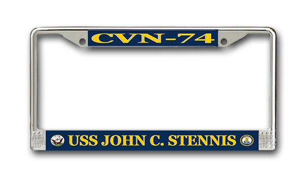 USS John C. Stennis CVN-74 License Plate FrameThis USS John C. Stennis CVN-74 U.S. Navy License Plate Frame is made from the highest quality finished metal alloy. Each one is designed to provide years of use. Each is designed in our facility in Scottsboro, Alabama.
