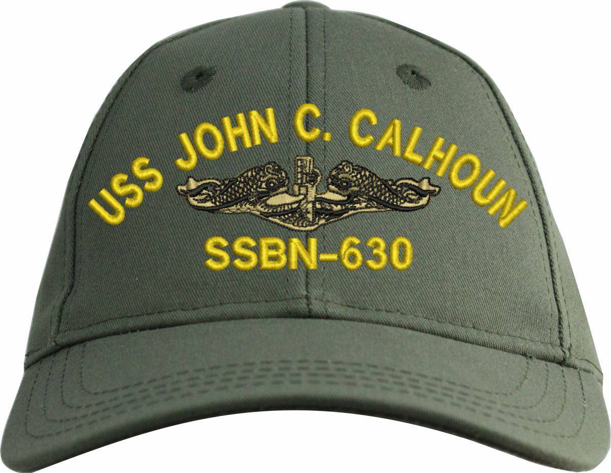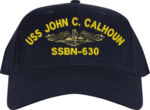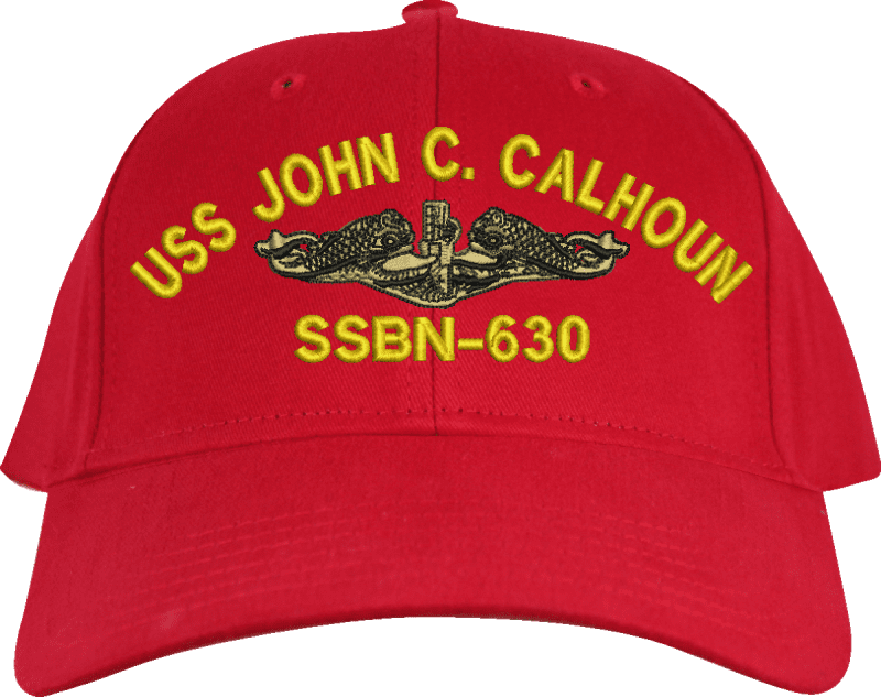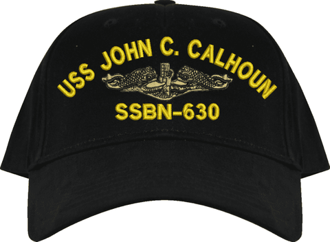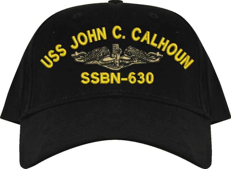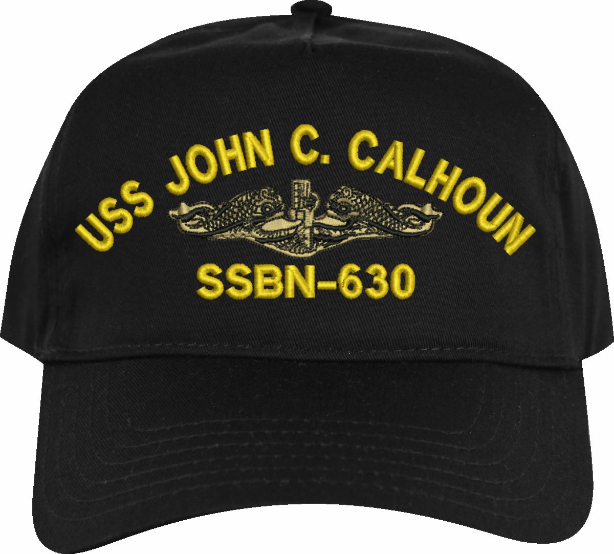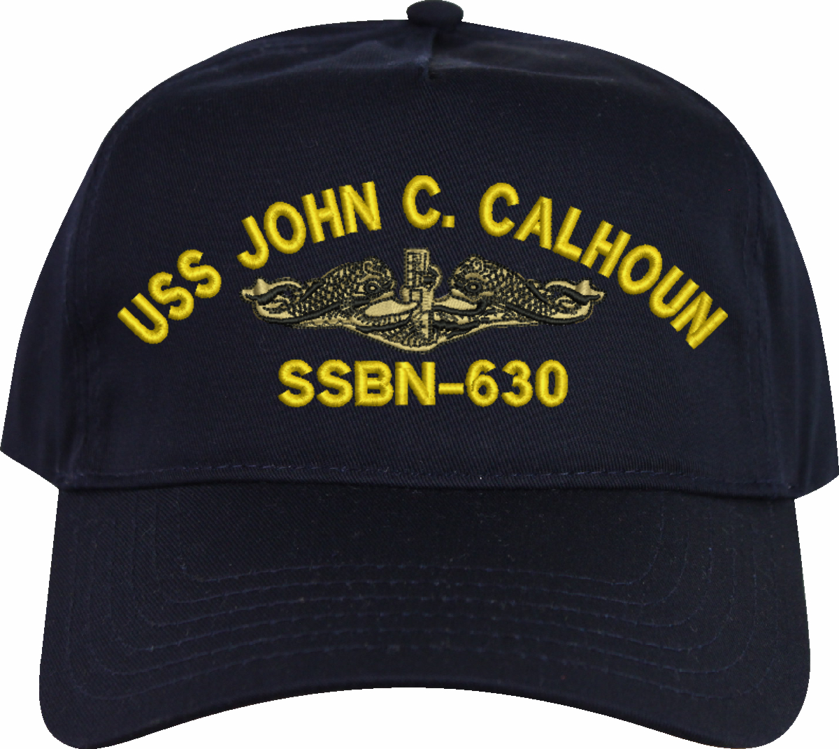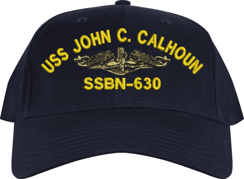 MilitaryBest is proud to offer this USS John C, Calhoun SSBN-630 ( Gold Dolphins ) Embroidered Cap. The design of this Cap is crisp, clean, and sure to be loved by people of all ages! This Cap is crafted by our skilled embroidery technicians at our facilities in Scottsboro, AL. As with all MilitaryBest items, your satisfaction is guaranteed!Caps ordered with custom embroidered personalized back text require an additional 2 to 3 days production time. All custom back text will be embroidered in ALL CAPITAL LETTERS. Caps personalized with back text are non-returnable unless there is a material defect in the cap.
