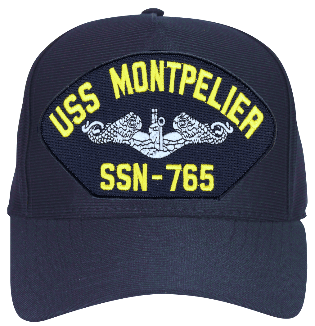 This USS Montpelier SSN-765 ( Silver Dolphins ) Submarine Enlisted Cap is an emblematic, poly, dark under the visor cap. Each has an adjustable strap, and is available as a 5 panel high profile or 6 panel low profile cap. All MilitaryBest caps are fully guaranteed. Some people call them Military Covers or Military Hats. This Military Cap is proudly Made in The U.S.A.For caps ordered with custom embroidered personalized text please allow an additional 3 to 5 days production time. All custom back text will be embroidered in ALL CAPITAL LETTERS. Caps with back text or eggs are non-returnable unless there is a material defect in the cap. If a style is not selected the cap will be made using a high profile style cap as pictured.