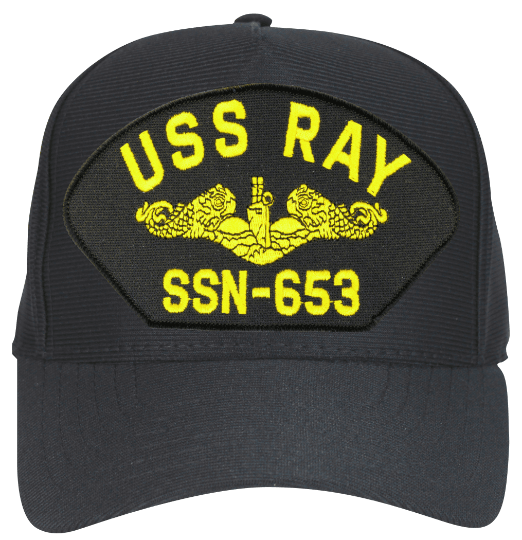 This USS Ray SSN-653 ( Gold Dolphins ) Submarine Officer Cap is an emblematic, poly, dark under the visor cap. Each has an adjustable strap, and is available as a 5 panel high profile or 6 panel low profile cap. All MilitaryBest caps are fully guaranteed. Some people call them Military Covers or Military Hats. This Military Cap is proudly Made in The U.S.A.For caps ordered with custom embroidered personalized text please allow an additional 3 to 5 days production time. All custom back text will be embroidered in ALL CAPITAL LETTERS. Caps with back text or eggs are non-returnable unless there is a material defect in the cap. If a style is not selected the cap will be made using a high profile style cap as pictured.