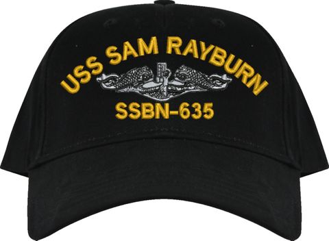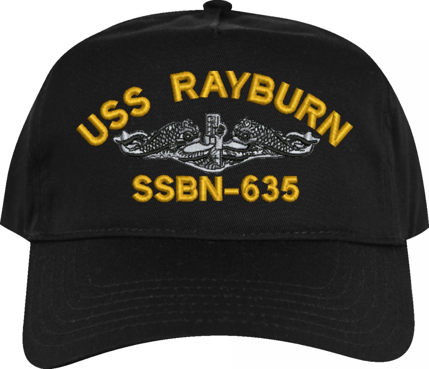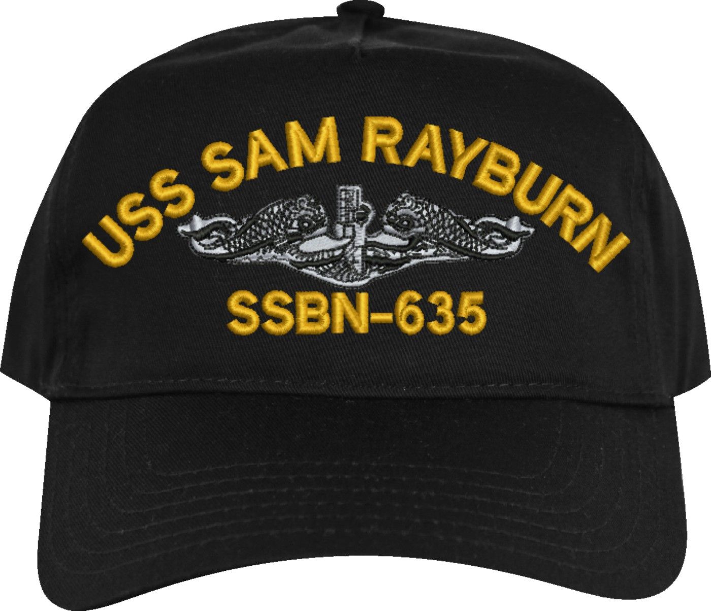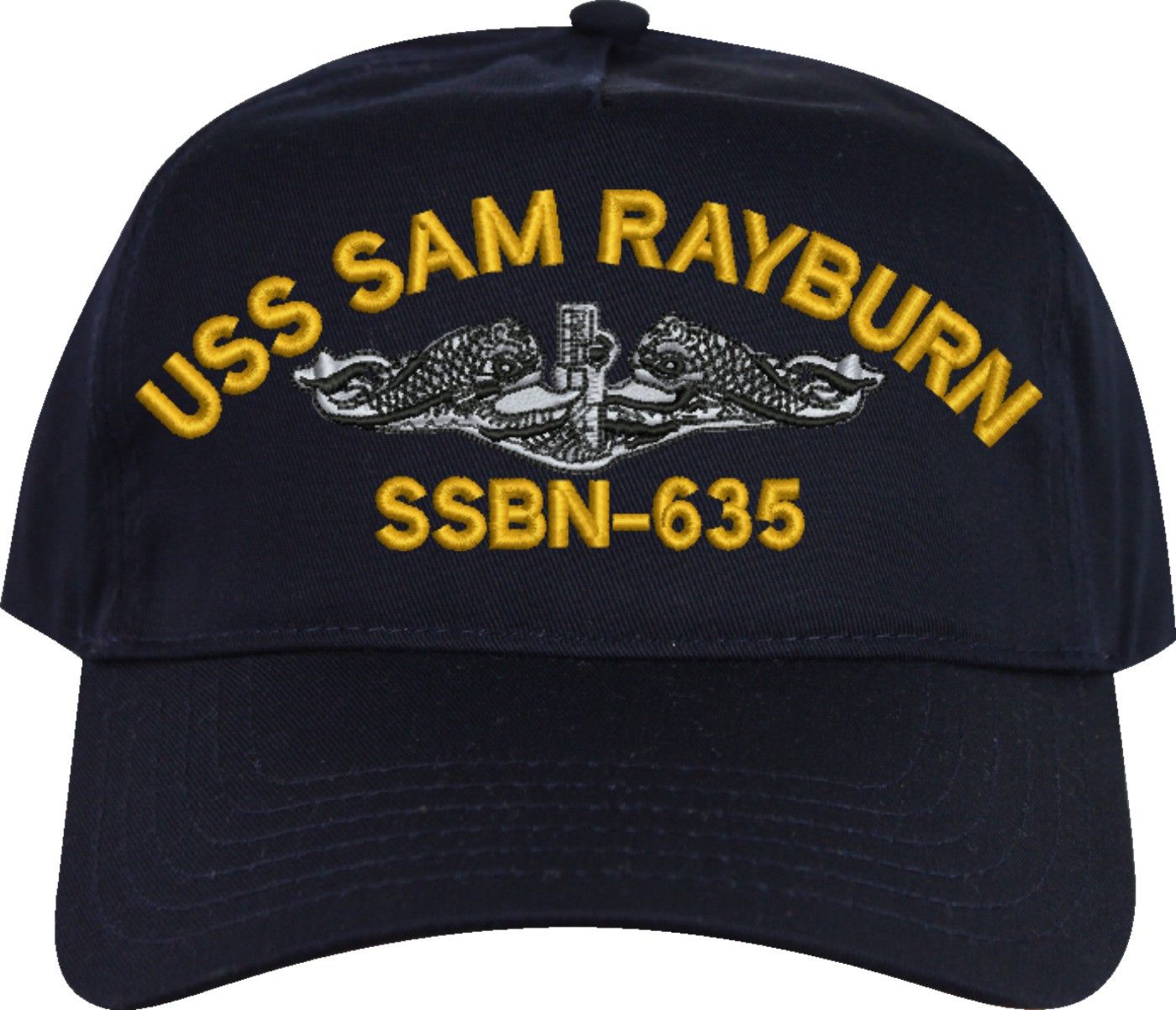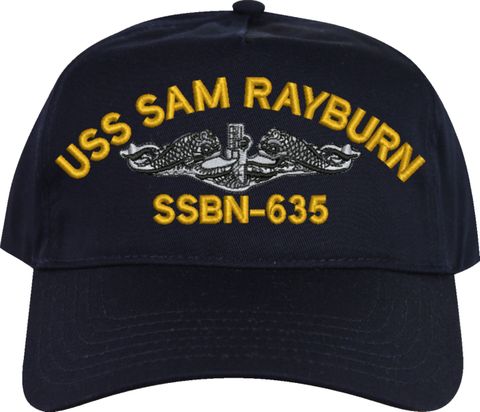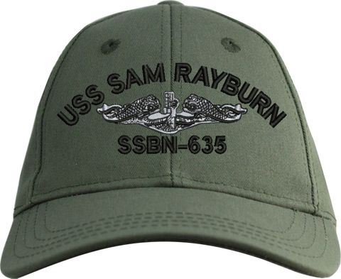 MilitaryBest is proud to offer this USS Sam Rayburn SSBN-635 with Dolphins Embroidered Cap. The design of this Cap is crisp, clean, and sure to be loved by people of all ages! This Cap is crafted by our skilled embroidery technicians at our facilities in Scottsboro, AL. As with all MilitaryBest items, your satisfaction is guaranteed!