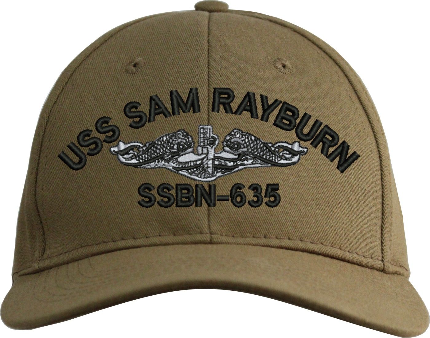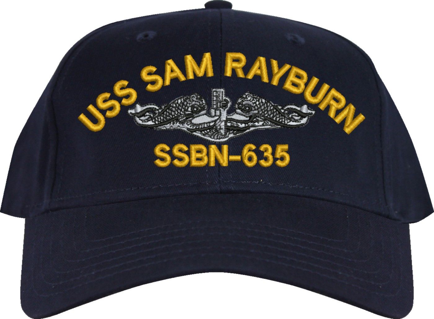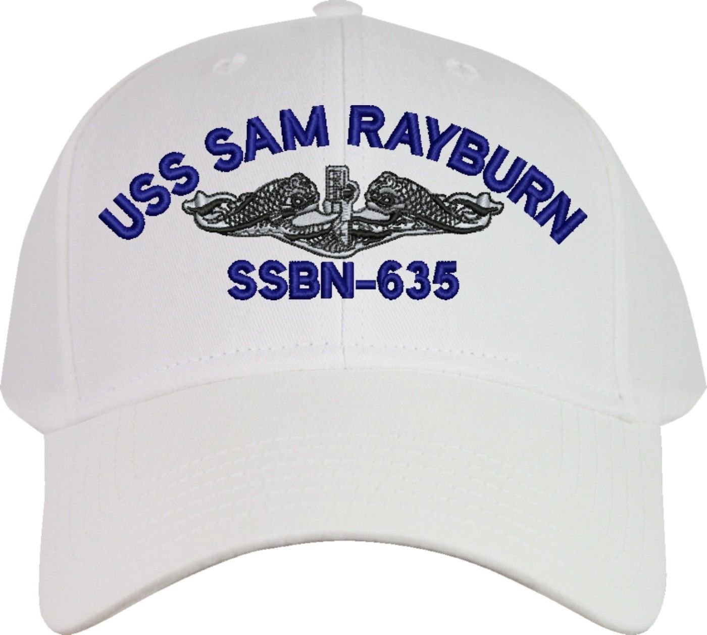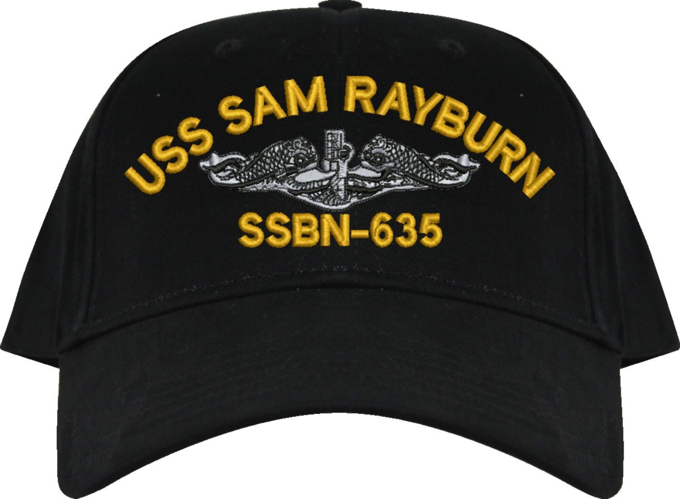 MilitaryBest is proud to offer this USS Sam Rayburn SSBN-635 with Dolphins Embroidered Cap. The design of this Cap is crisp, clean, and sure to be loved by people of all ages! This Cap is crafted by our skilled embroidery technicians at our facilities in Scottsboro, AL. As with all MilitaryBest items, your satisfaction is guaranteed!