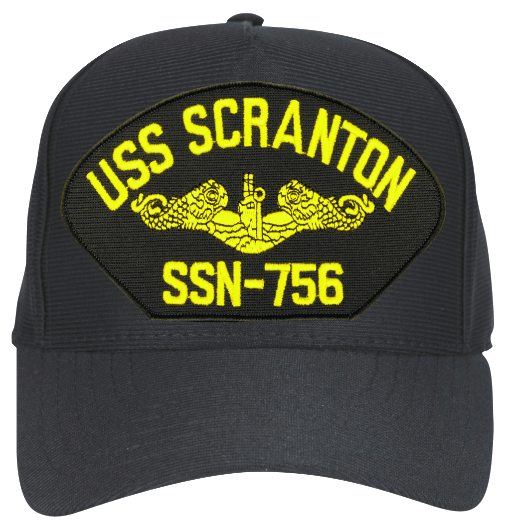 This USS Scranton SSN-756 ( Gold Dolphins ) Submarine Officer Cap is an emblematic, poly, dark under the visor cap. Each has an adjustable strap, and is available as a 5 panel high profile or 6 panel low profile cap. All MilitaryBest caps are fully guaranteed. Some people call them Military Covers or Military Hats. This Military Cap is proudly Made in The U.S.A.For caps ordered with custom embroidered personalized text please allow an additional 3 to 5 days production time. All custom back text will be embroidered in ALL CAPITAL LETTERS. Caps with back text or eggs are non-returnable unless there is a material defect in the cap. If a style is not selected the cap will be made using a high profile style cap as pictured.
