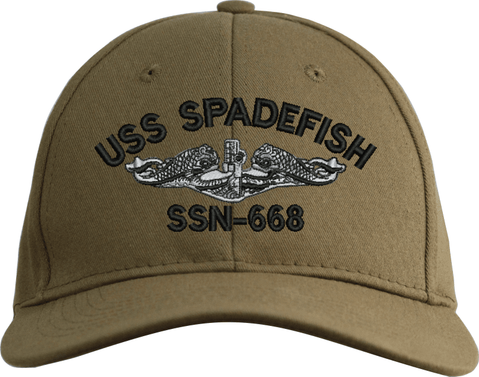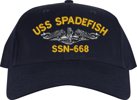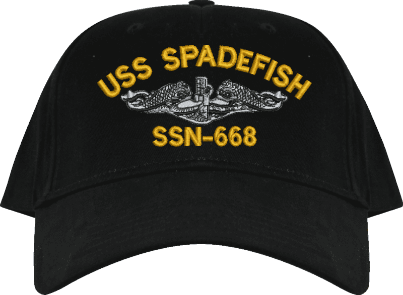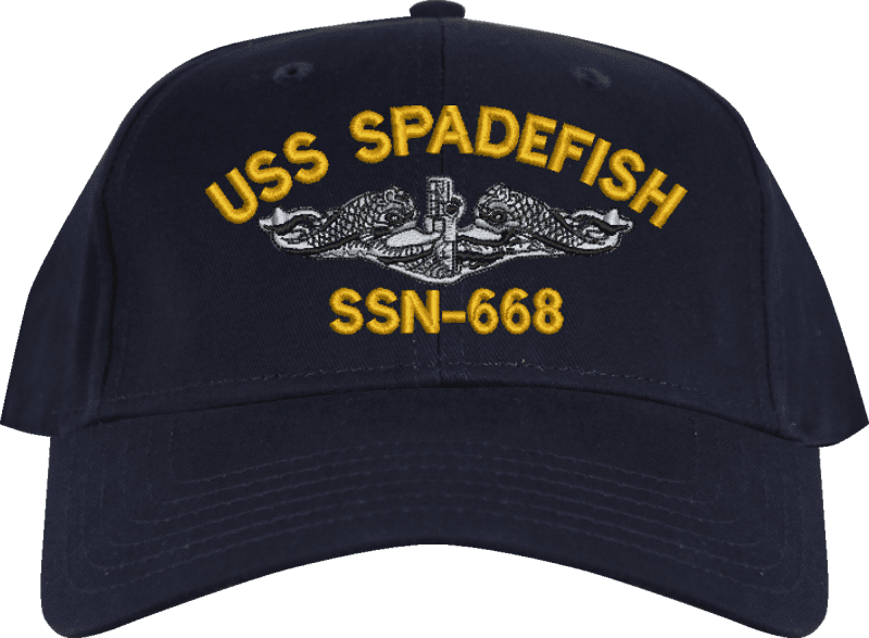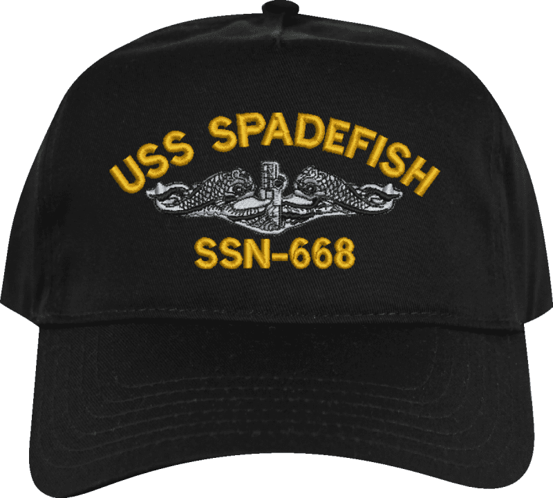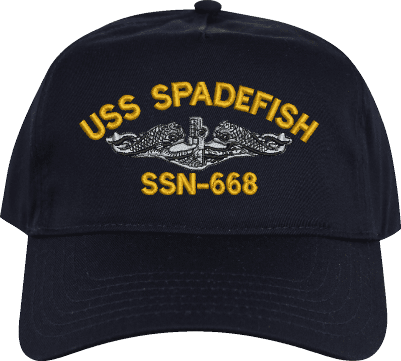 MilitaryBest is proud to offer this USS Spadefish SSN-668 Submarine Custom Embroidered Cap. The design of this Cap is crisp, clean, and sure to be loved by people of all ages! This Cap is crafted by our skilled embroidery technicians at our facilities in Scottsboro, AL. As with all MilitaryBest items, your satisfaction is guaranteed!Caps ordered with custom embroidered personalized back text require an additional 2 to 3 days production time. All custom back text will be embroidered in ALL CAPITAL LETTERS. Caps personalized with back text are non-returnable unless there is a material defect in the cap.