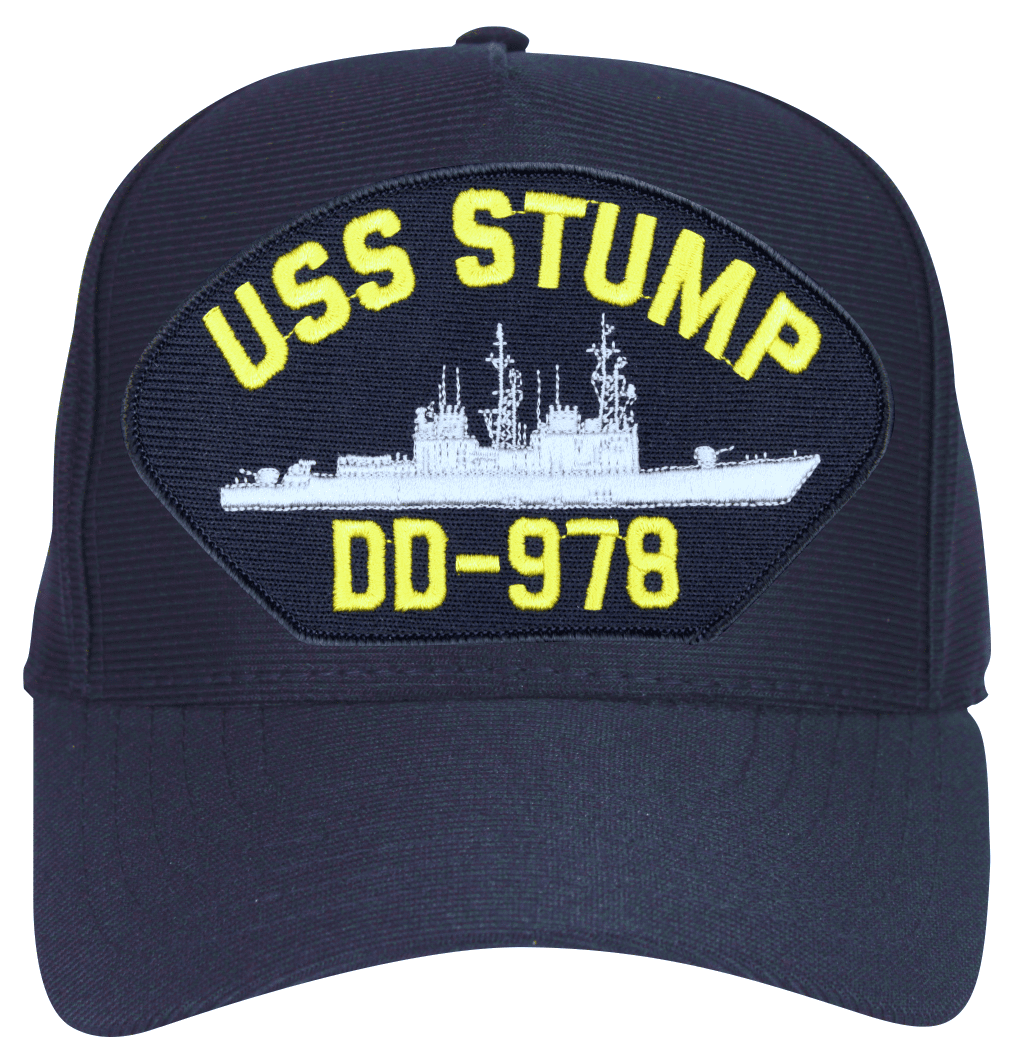 This USS Stump DD-978 Ship Cap is an emblematic, poly, dark under the visor cap. Each has an adjustable strap, and is available as a 5 panel high profile or 6 panel low profile cap. All MilitaryBest caps are fully guaranteed. Some people call them Military Covers or Military Hats. This Military Cap is proudly Made in The U.S.A.For caps ordered with custom embroidered personalized text please allow an additional 3 to 5 days production time. All custom back text will be embroidered in ALL CAPITAL LETTERS. Caps with back text or eggs are non-returnable unless there is a material defect in the cap. If a style is not selected the cap will be made using a high profile style cap as pictured.