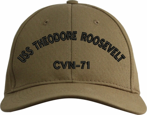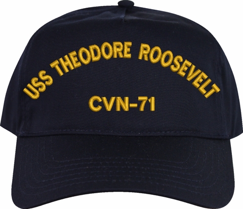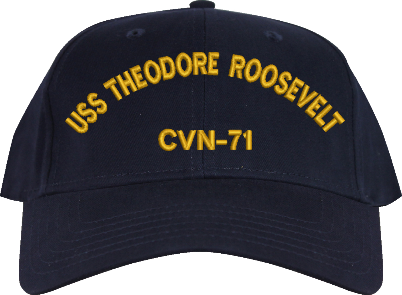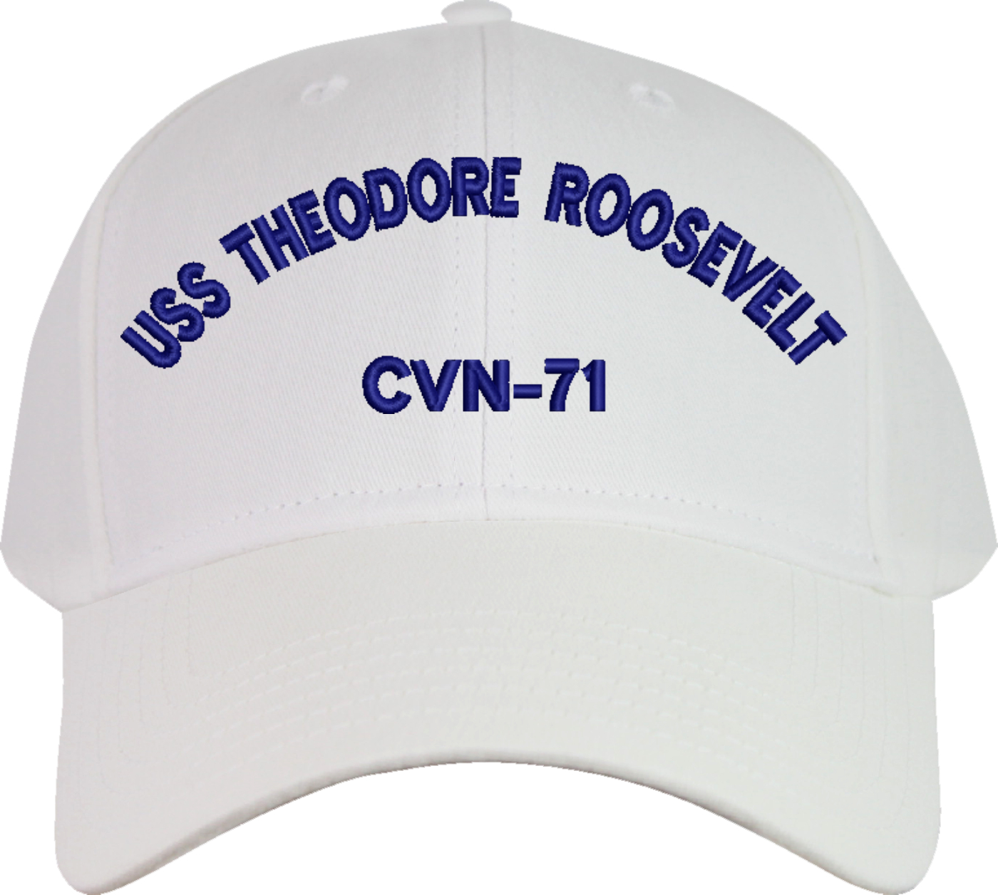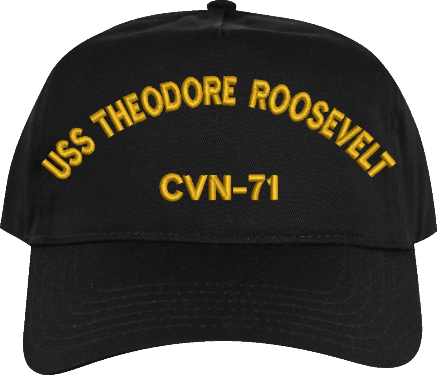 MilitaryBest is proud to offer this USS Theodore Roosevelt CVN-71 Text-Only Embroidered Cap. The design of this Cap is crisp, clean, and sure to be loved by people of all ages! This Cap is crafted by our skilled embroidery technicians at our facilities in Scottsboro, AL. As with all MilitaryBest items, your satisfaction is guaranteed!