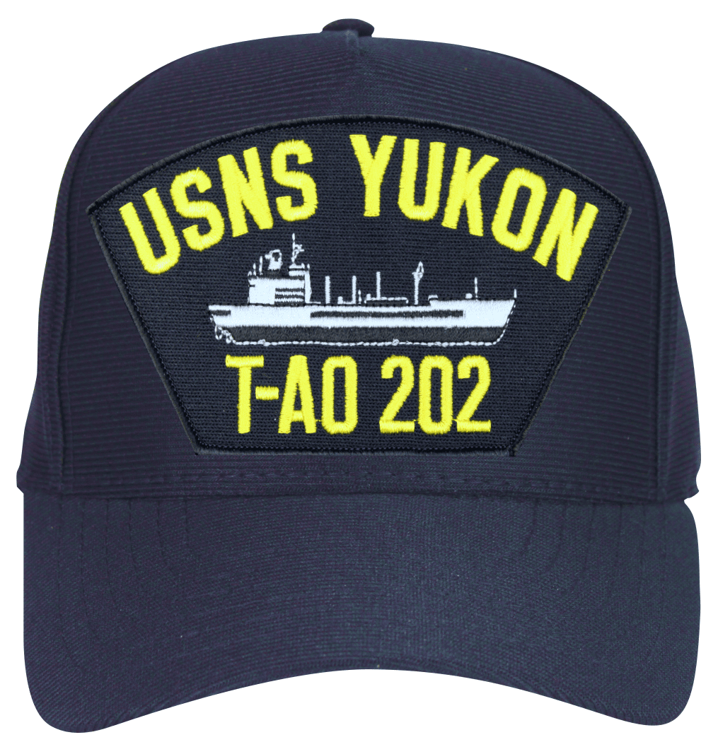 This USNS Yukon T-AO 202 Ship Cap is an emblematic, poly, dark under the visor cap. Each has an adjustable strap, and is available as a 5 panel high profile or 6 panel low profile cap. All MilitaryBest caps are fully guaranteed. Some people call them Military Covers or Military Hats. This Military Cap is proudly Made in The U.S.A.For caps ordered with custom embroidered personalized text please allow an additional 3 to 5 days production time. All custom back text will be embroidered in ALL CAPITAL LETTERS. Caps with back text or eggs are non-returnable unless there is a material defect in the cap. If a style is not selected the cap will be made using a high profile style cap as pictured.