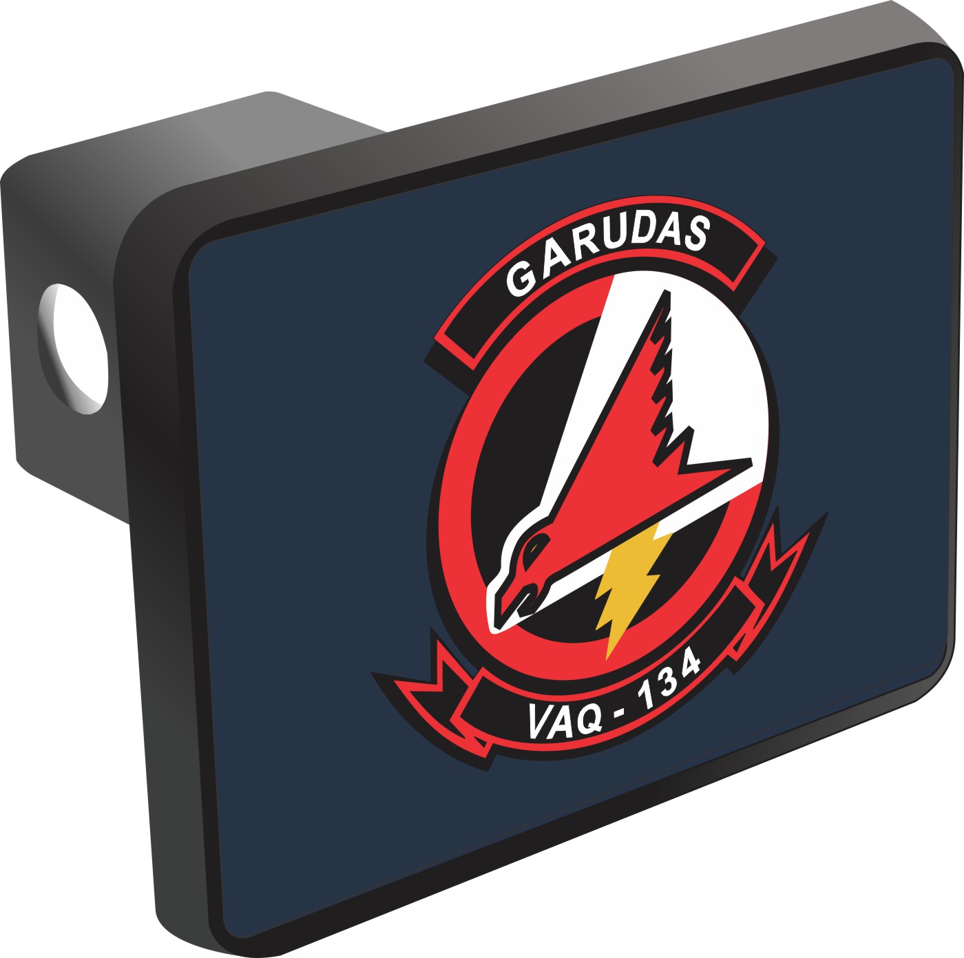 This VAQ -134 "Garudas" Hitch Cover is proudly Made in the USA. Each Hitch Cover's face plate measures 4.7" x 3.4" and is applied on a black heavy duty injection molded plastic 2" hitch cover; link pin not included. The face plate of the hitch cover is sublimation printed to provide a beautiful glossy finish sure to catch the eye. This hitch cover would make a wonderful addition to your truck or other vehicle.A percentage of the sale of each MilitaryBest item is forwarded to the licensing departments of each respective branch of service in support of the MWR (Morale, Welfare, & Recreation) program. These payments are made by either ALL4U LLC or the wholesaler from where the item originated. Our team thanks you for your service and your support of these programs.