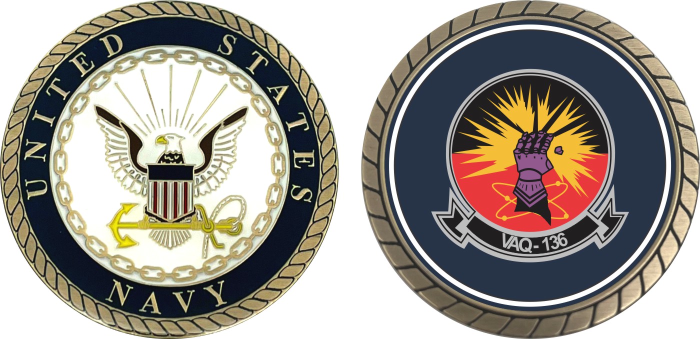 This 1 3/4” VAQ-136 'The Gauntlets' Patch Challenge Coin is proudly offered by Militarybest. This Officially Licensed Navy coin has beautiful enamel finish on one side and an organized crisp clean design on the opposite side.