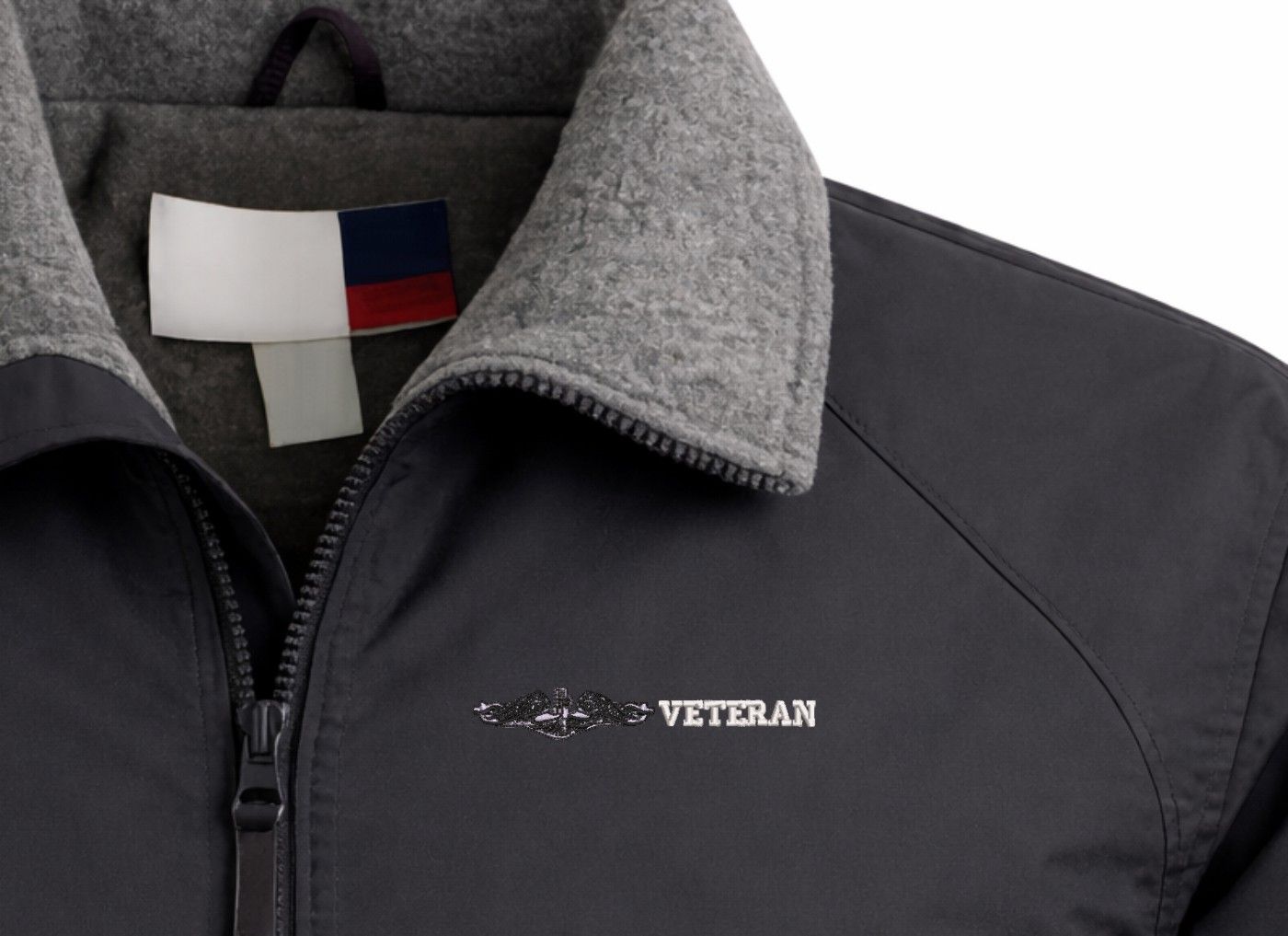 Note: Some of the Color Options pictured may not be available. Available Color Options are listed on the drop down menu above.MilitaryBest is proud to offer this quality U.S. Navy Enlisted Silver Dolphins Veteran 3-Season Jacket. Each three season jacket is made from a 3-Layer system consisting of a nylon shell, an insulator layer, Nylon-lined sleeves, and an inside layer of fleece for comfort. Each jackets features include a sturdy black enamel front-zipper, raglan sleeves, outsize zip pockets, an inside zip security pocket, YKK zippers, and a banded-bottom. As with all MilitaryBest products, your satisfaction is guaranteed! This jacket can be worn in fall, winter, and spring and is proudly custom embroidered at our facilities in Scottsboro, AL.