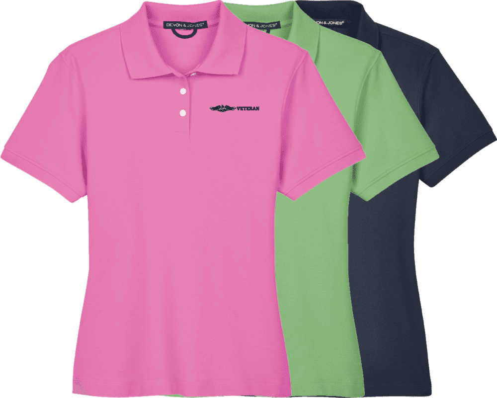 Note: Some of the Color Options pictured may not be available. Available Color Options are listed on the drop down menu above.MilitaryBest is proud to offer this U.S. Navy Enlisted Silver Dolphins Veteran Women's Devon & Jones Polo. This Ladies Devon & Jones Polo features Rib knit cuffs, Dura-Pearl Buttons, and a Three-Button Placket. These Women's Devon & Jones Polos are made with 6.8 oz., 100% Peruvian Pima Cotton and are proudly embroidered at our facilities in Scottsboro, AL.
