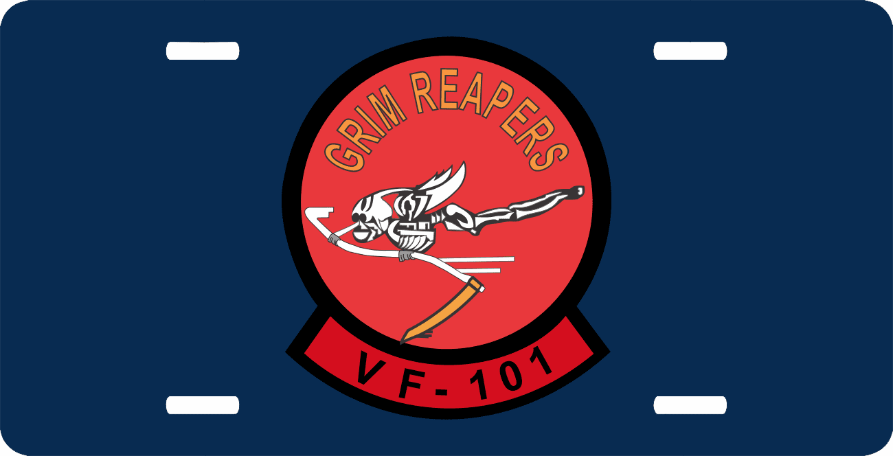 This VF-101 Grim Reapers License Plate is made from heavy gauge aluminum and has a baked enamel finish to last for many years of use. Each plate measures 5 15/16" x 11 15/16". This license plate would make a wonderful addition to your collection or a great gift.