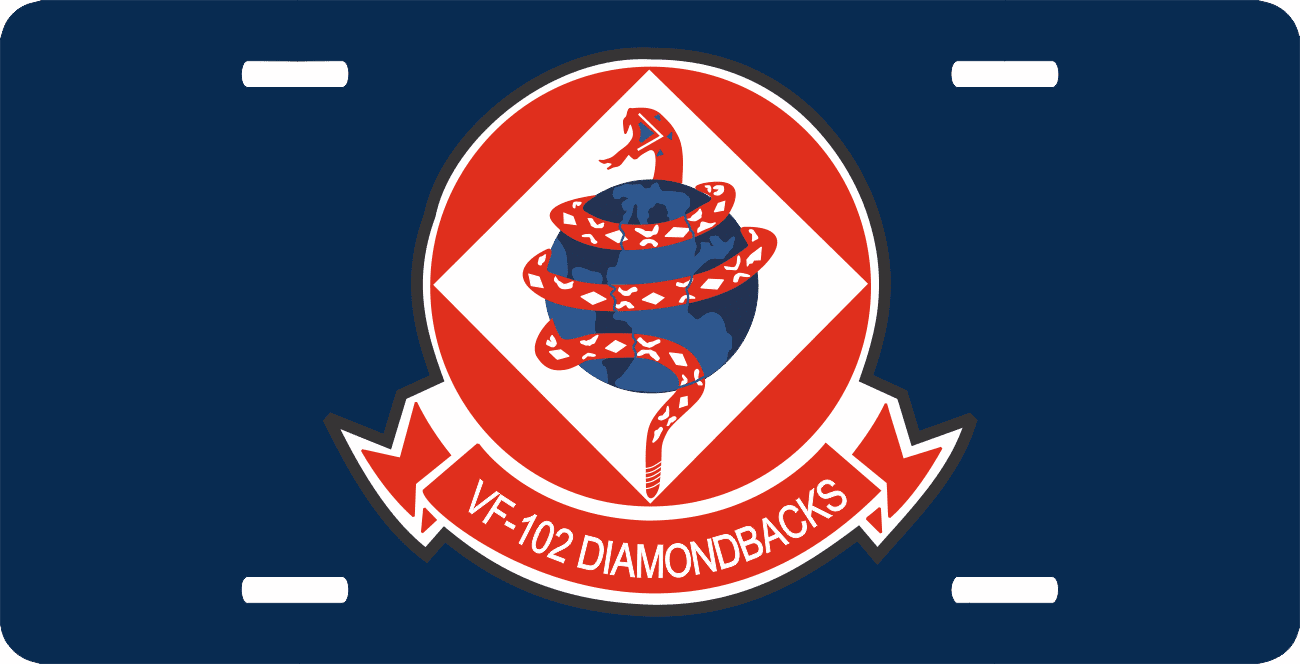 This VF-102 Diamond Backs License Plate is made from heavy gauge aluminum and has a baked enamel finish to last for many years of use. Each plate measures 5 15/16" x 11 15/16". This license plate would make a wonderful addition to your collection or a great gift.