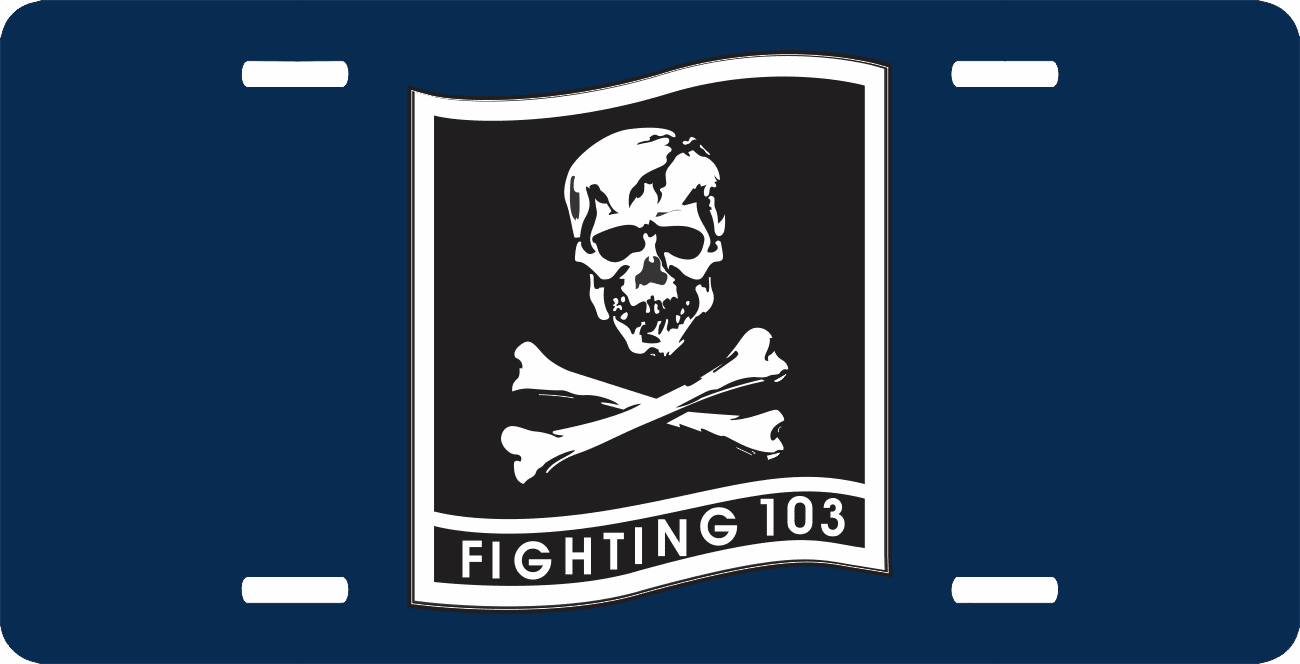 This VF-103 Jolly Rogers License Plate is made from heavy gauge aluminum and has a baked enamel finish to last for many years of use. Each plate measures 5 15/16" x 11 15/16". This license plate would make a wonderful addition to your collection or a great gift.