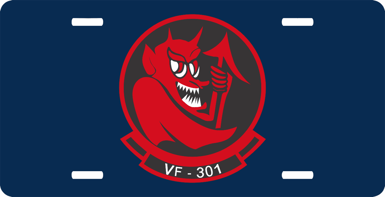 This VF-301 License Plate is made from heavy gauge aluminum and has a baked enamel finish to last for many years of use. Each plate measures 5 15/16" x 11 15/16". This license plate would make a wonderful addition to your collection or a great gift.