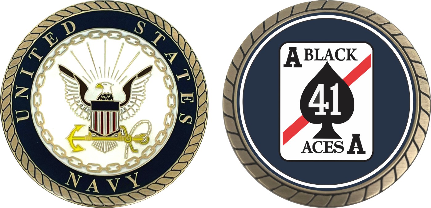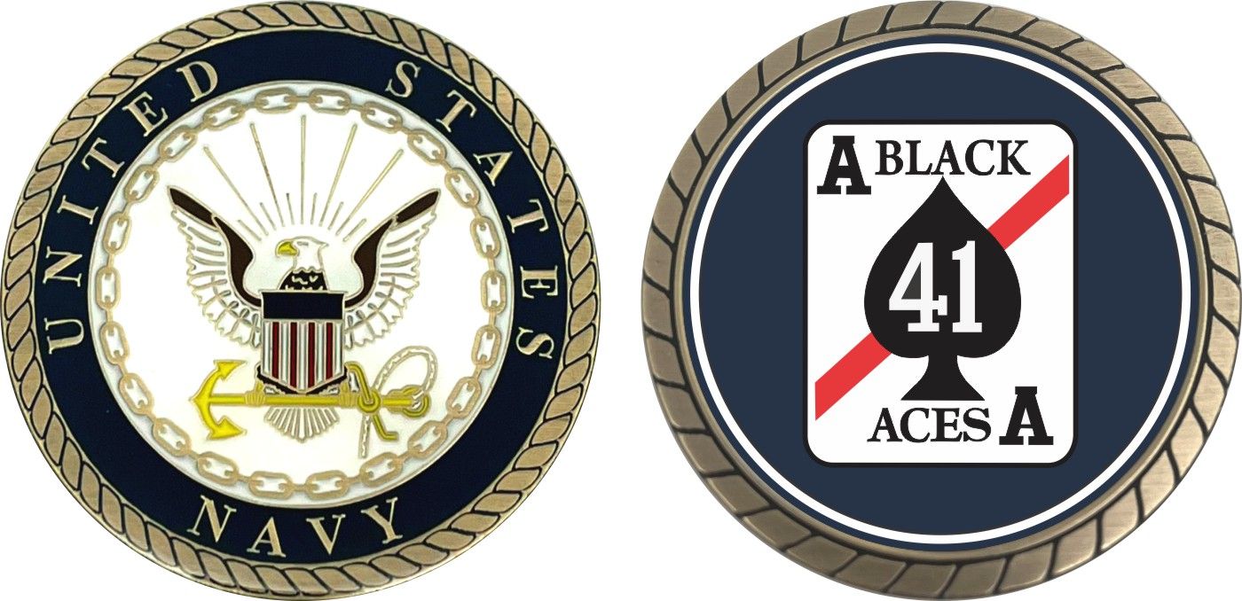 This 1 3/4” VF-41 'Black Aces' Patch Challenge Coin is proudly offered by Militarybest. This Officially Licensed Navy coin has beautiful enamel finish on one side and an organized crisp clean design on the opposite side.