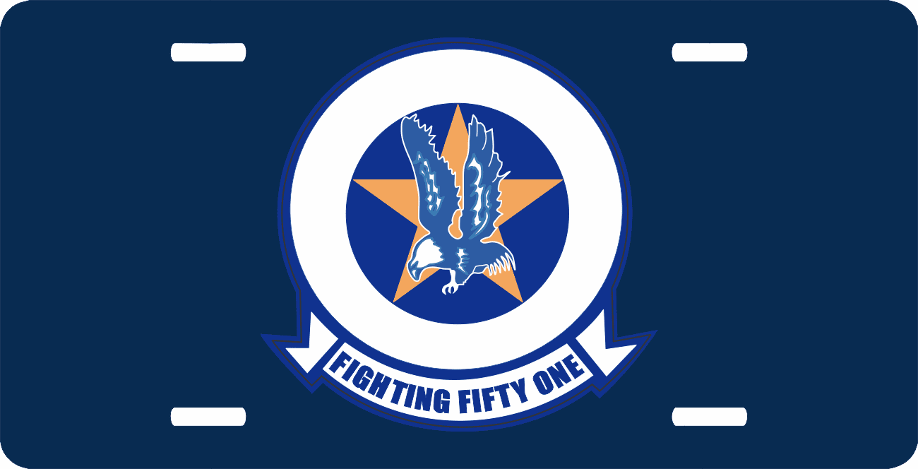 This VF-51 Screaming Eagles License Plate is made from heavy gauge aluminum and has a baked enamel finish to last for many years of use. Each plate measures 5 15/16" x 11 15/16". This license plate would make a wonderful addition to your collection or a great gift.