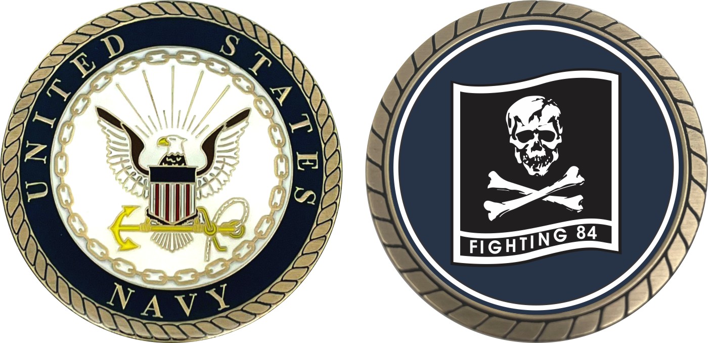 This 1 3/4” VF-84 'Fighting 84' Patch Challenge Coin is proudly offered by Militarybest. This Officially Licensed Navy coin has beautiful enamel finish on one side and an organized crisp clean design on the opposite side.