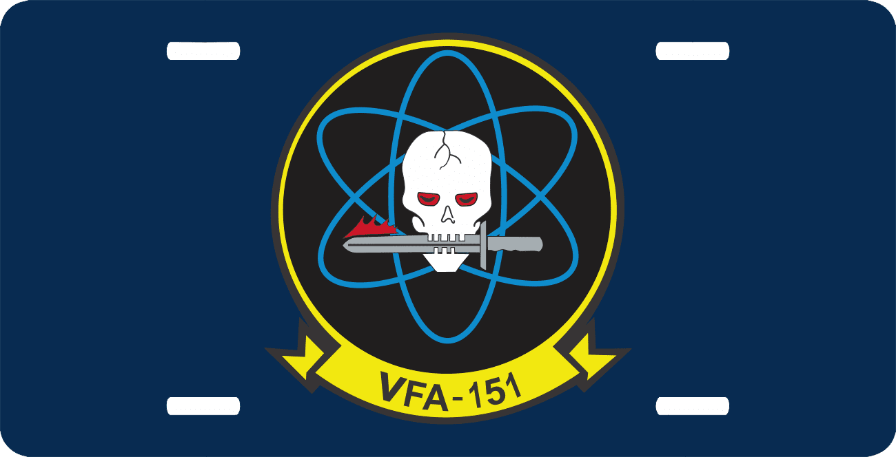 This VFA-151 Vigilantes License Plate is made from heavy gauge aluminum and has a baked enamel finish to last for many years of use. Each plate measures 5 15/16" x 11 15/16". This license plate would make a wonderful addition to your collection or a great gift.