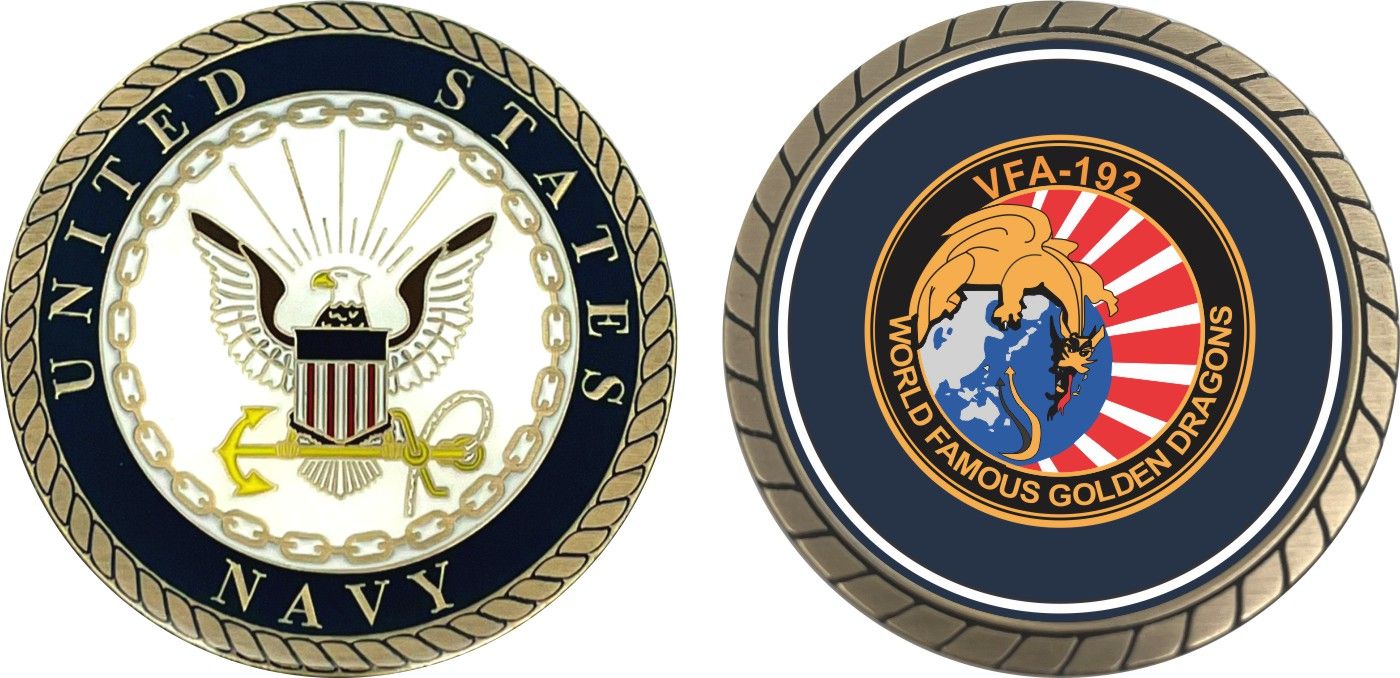 This 1 3/4” VFA-192 'World Famous Golden Dragons' Patch Challenge Coin is proudly offered by Militarybest. This Officially Licensed Navy coin has beautiful enamel finish on one side and an organized crisp clean design on the opposite side.