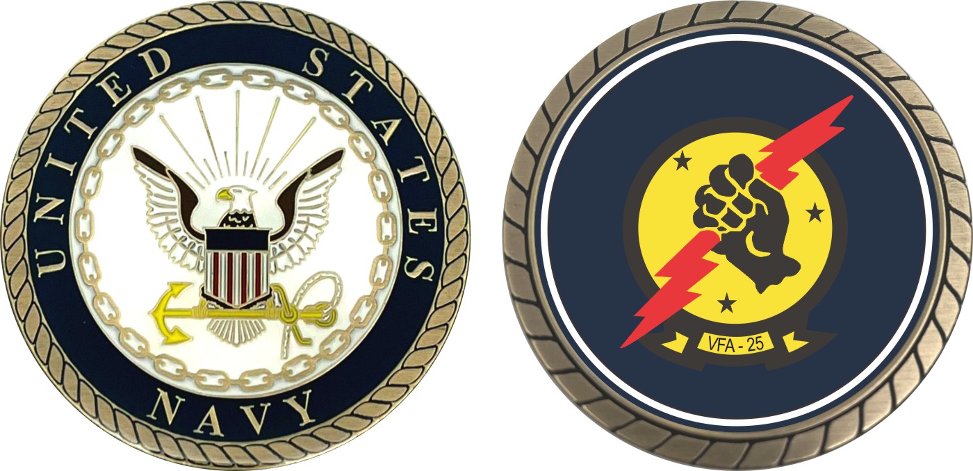 This 1 3/4” VFA-25 'Fist of the Fleet' Patch Challenge Coin is proudly offered by Militarybest. This Officially Licensed Navy coin has beautiful enamel finish on one side and an organized crisp clean design on the opposite side.