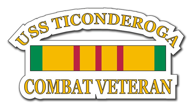 This Vinyl USS Ticonderoga CV-14 Vietnam Combat Veteran with Ribbon sticker is a Militarybest.com exclusive. Our combat veteran decal is make at our facilities in Scottsboro, Alabamau This sticker measures on its longest side and it is designed for outside application. For bulk pricing for custom and wholesale decals click here: Custom & Wholesale Decals!
