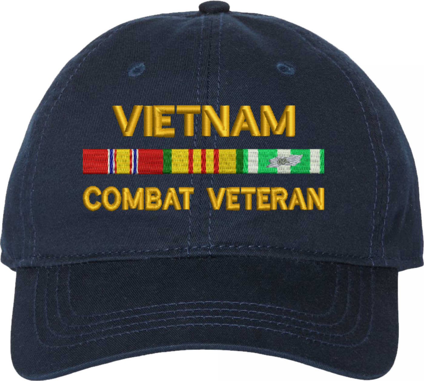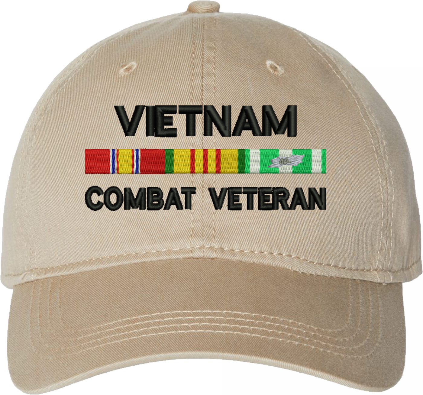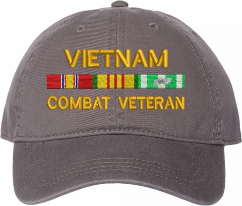 Show your military pride with this Vietnam Combat Veteran with Service Ribbons Unstructured Dad Cap from MilitaryBest. Crafted from 100% washed chino twill cotton, this six-panel, low-profile cap offers a relaxed and comfortable fit. Featuring high-quality embroidery done in our Scottsboro, Alabama facility, this cap is designed with a pre-curved visor and an adjustable tri-glide buckle closure for a perfect fit. Whether for everyday wear or as a meaningful gift, this cap is a great way to honor your own or a loved one's service.For caps ordered with custom embroidered personalized text please allow an additional 3 to 5 days production time. All custom back text will be embroidered in ALL CAPITAL LETTERS. Caps with back text or eggs are non-returnable unless there is a material defect in the cap.