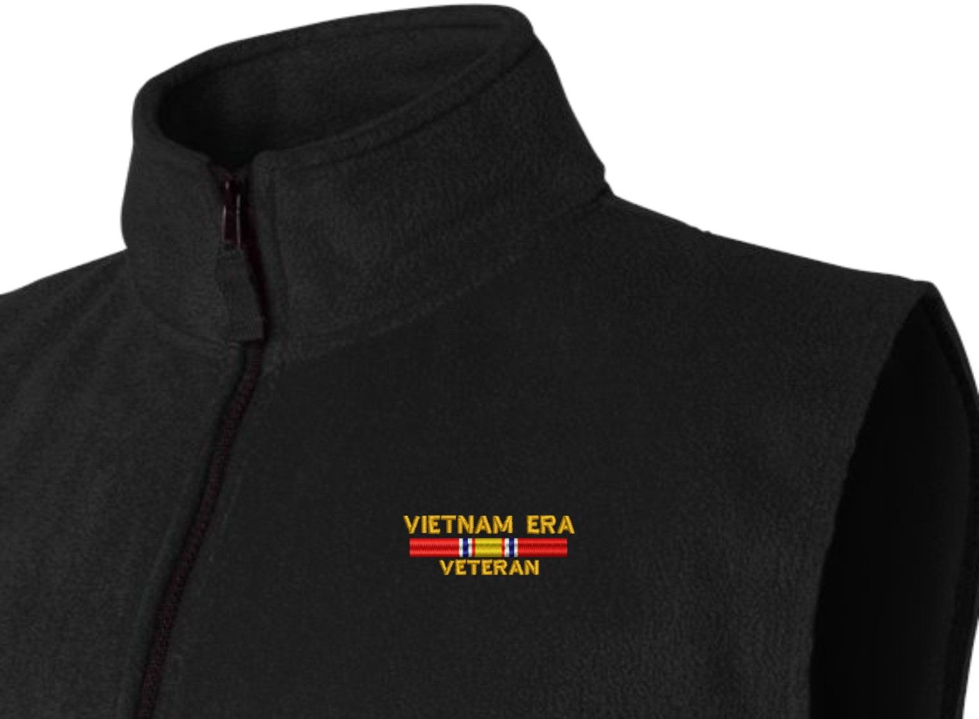 Due to supply chain disruptions, some colors and sizes may not be available in the same Brand, in these cases a brand of comparable quality will be used. Feel free to call in advance of your order, with questions you may have.MilitaryBest is expanding it's line of Men's apparel with this quality Vietnam Era Veteran Full-Zip Fleece Vest. This Full-Zip Fleece Vests feature a convertible collar with dyed-to-match zipper pull, oversized nylon reinforced slash pockets, and an elastic hem. They are made out of 100% anti-pill polyester. This vest will make an excellent addition to your wardrobe, or a quality gift. Your satisfaction is guaranteed! All embroidery is done at our facilities in Scottsboro, AL.
