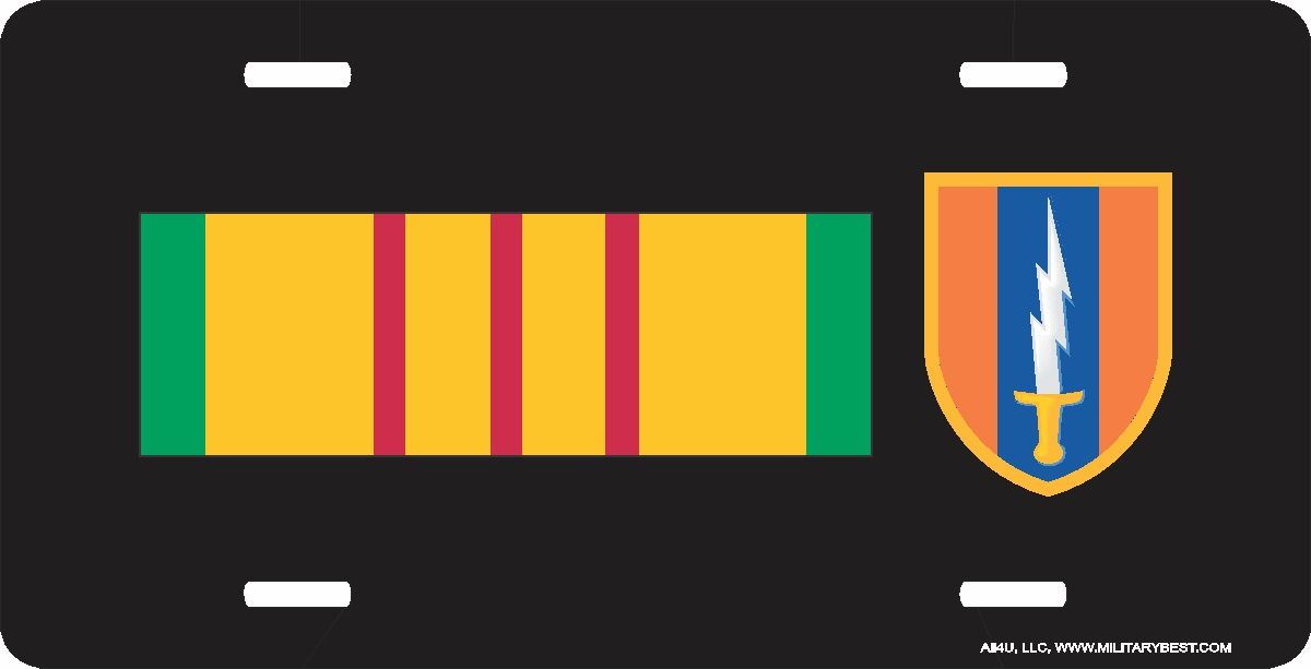 This Vietnam Ribbon with 1st Signal Brigade License Plate is made from heavy gauge aluminum and has a baked enamel finish to last for many years of use. Each plate measures 5 15/16" x 11 15/16". This license plate would make a wonderful addition to your collection or a great gift.