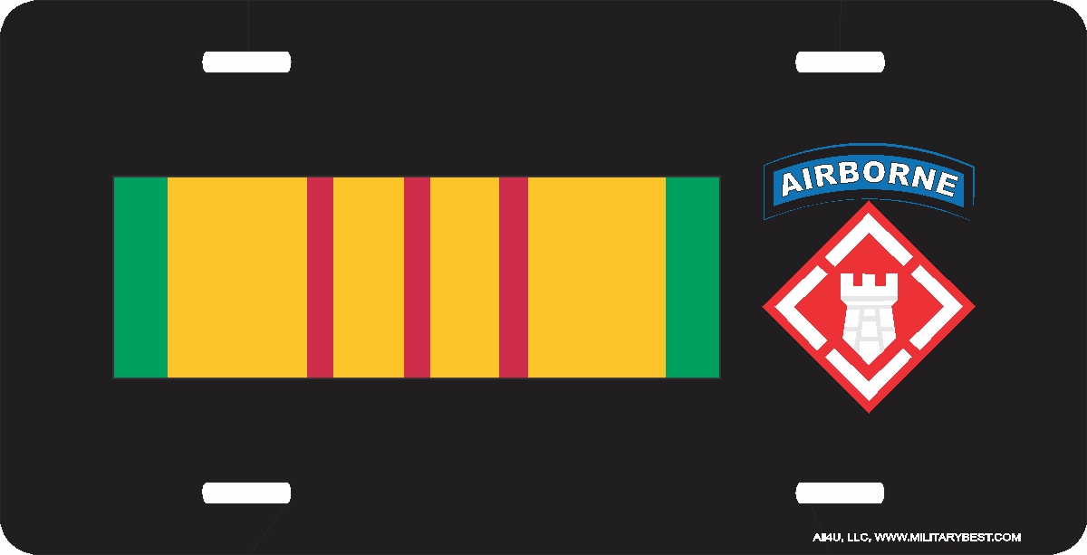 This Vietnam Ribbon with 20th Engineer Airborne License Plate is made from heavy gauge aluminum and has a baked enamel finish to last for many years of use. Each plate measures 5 15/16" x 11 15/16". This license plate would make a wonderful addition to your collection or a great gift.