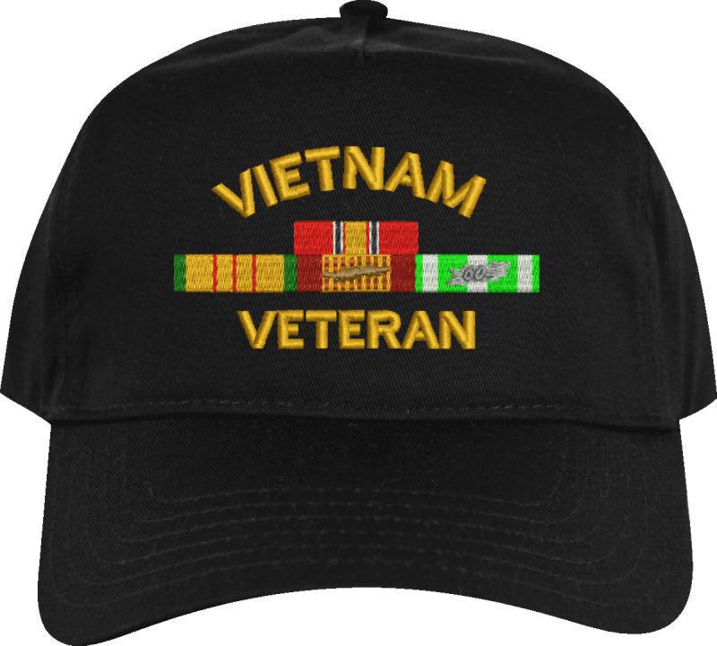 MilitaryBest is proud to offer this Vietnam Veteran with Four Ribbons Embroidered Cap. The design of this Cap is crisp, clean, and sure to be loved by people of all ages! This Cap is crafted by our skilled embroidery technicians at our facilities in Scottsboro, AL. As with all MilitaryBest items, your satisfaction is guaranteed!Caps ordered with custom embroidered personalized back text require an additional 2 to 3 days production time. All custom back text will be embroidered in ALL CAPITAL LETTERS. Caps personalized with back text are non-returnable unless there is a material defect in the cap.