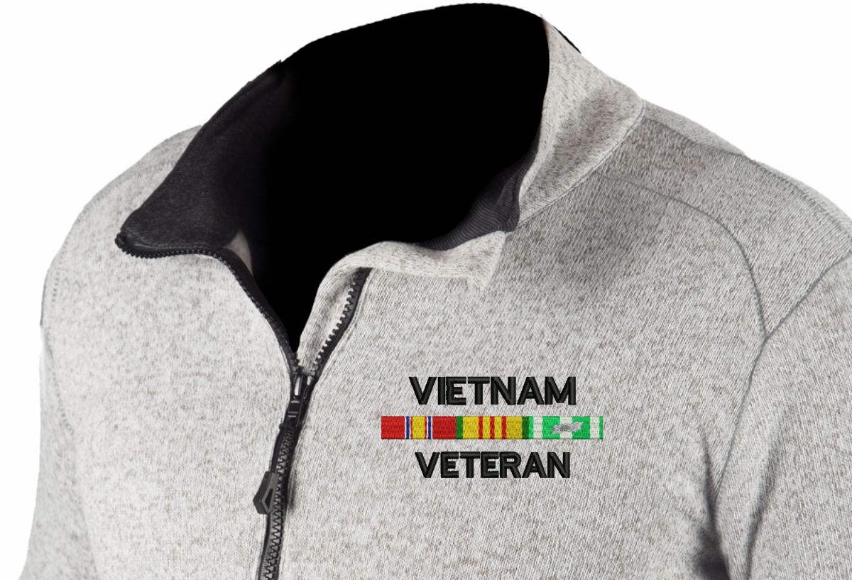 Striving to provide you with the highest quality apparel made in the United States, MilitaryBest is proud to offer this Vietnam Veteran with Service Ribbons Knit HEATR Long Sleeve Full Zip. Manufactured by WSI Sportswear in Minnesota and Embroidered by us here at MilitaryBest in Alabama; this shirt is 100% Made in the USA! We aim to provide you with soft, comfortable, dry-fit, American-made clothing that allows you to be your best. HEATR is a high-tech material developed by WSI that helps keep you up to 40% warmer than other materials on the market. Fibers that are integrated within the fabric expand and heat up as they come into contact with the skin. Since the fibers are integrated in the fabric, they will not wash out. *For washing we recommend machine wash cold with like colors, and line dry.PRODUCT FEATURES
