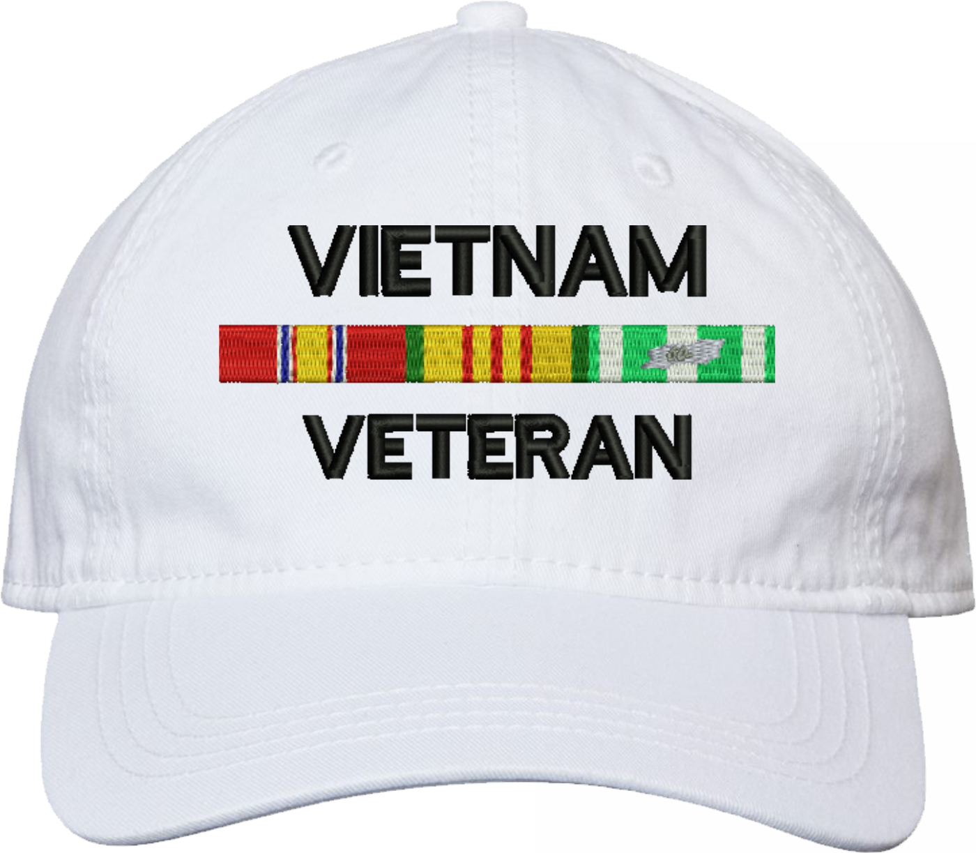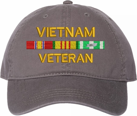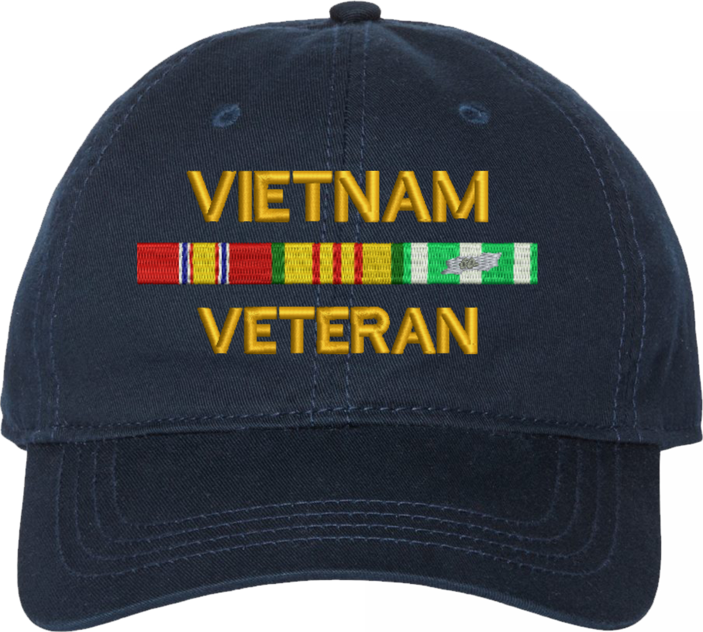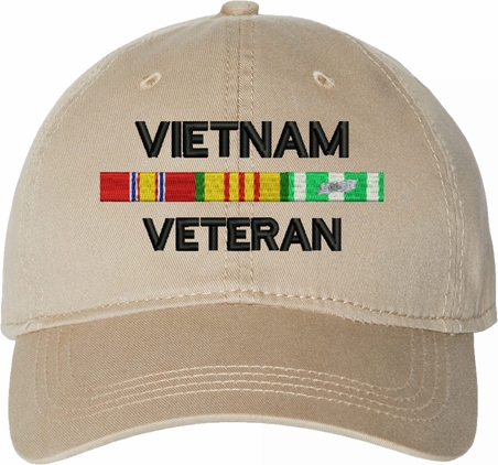 Show your military pride with this Vietnam Veteran with Service Ribbons Unstructured Dad Cap from MilitaryBest. Crafted from 100% washed chino twill cotton, this six-panel, low-profile cap offers a relaxed and comfortable fit. Featuring high-quality embroidery done in our Scottsboro, Alabama facility, this cap is designed with a pre-curved visor and an adjustable tri-glide buckle closure for a perfect fit. Whether for everyday wear or as a meaningful gift, this cap is a great way to honor your own or a loved one's service.For caps ordered with custom embroidered personalized text please allow an additional 3 to 5 days production time. All custom back text will be embroidered in ALL CAPITAL LETTERS. Caps with back text or eggs are non-returnable unless there is a material defect in the cap.