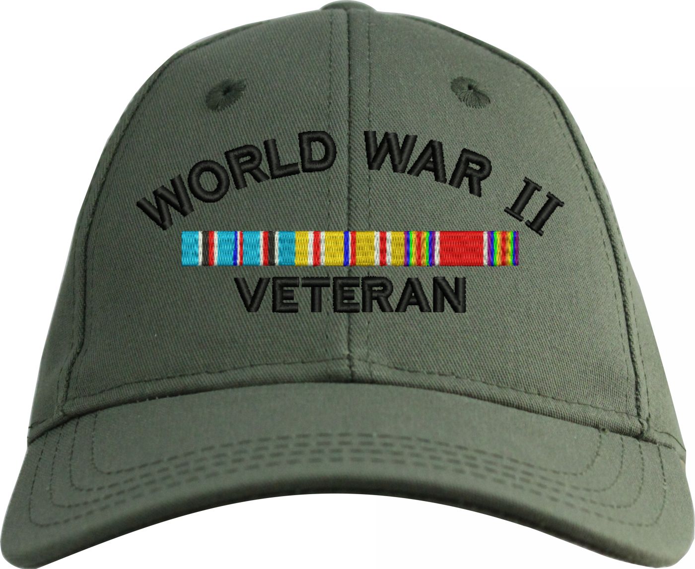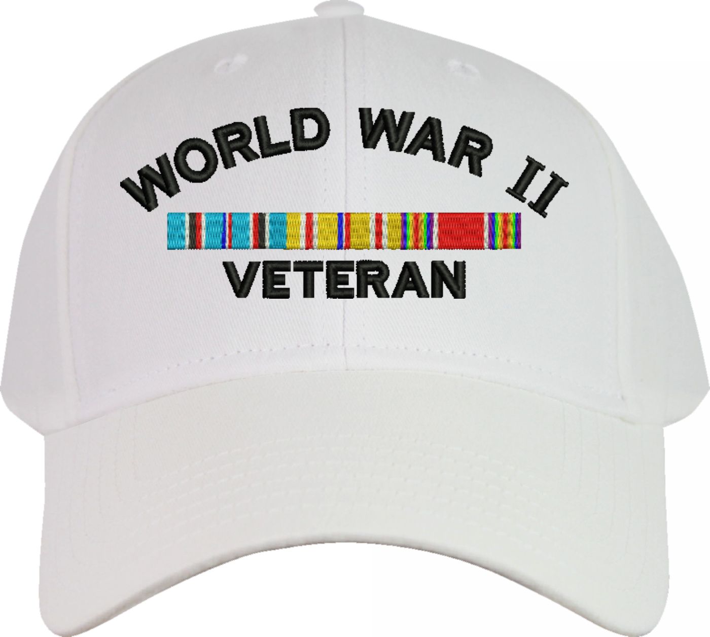 MilitaryBest is proud to offer this WW II Veteran Pacific with Ribbons Embroidered Cap. The design of this Cap is crisp, clean, and sure to be loved by people of all ages! This Cap is crafted by our skilled embroidery technicians at our facilities in Scottsboro, AL. As with all MilitaryBest items, your satisfaction is guaranteed!
