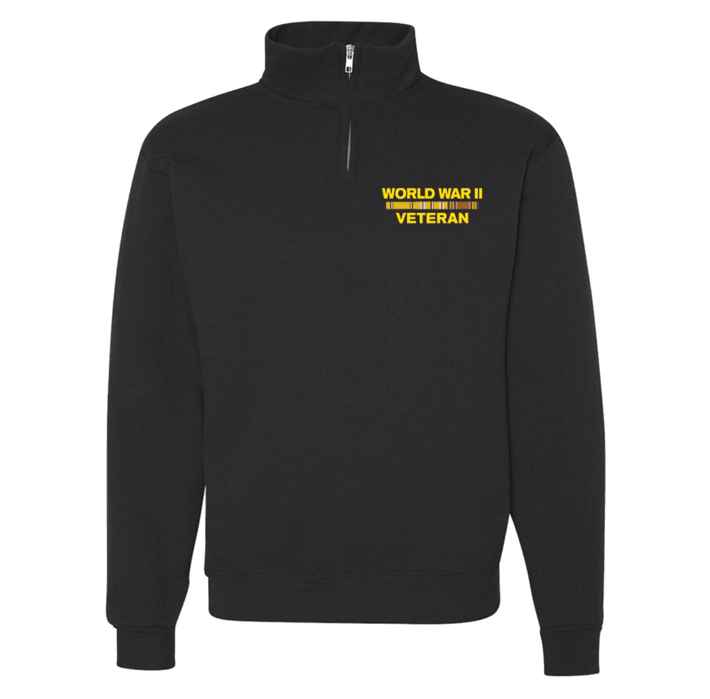 This WWII Pacific Veteran Quarter-Zip makes an excellent addition to your wardrobe or a fine gift and features High stitch density Nublend® pill-resistant fleece, Pre-shrunk 50/50 cotton/polyester and a Concealed 7"" zipper. The graphic is state of the art DTF film.It is available in 3 colors - Black, Navy Blue and Oxford Gray.